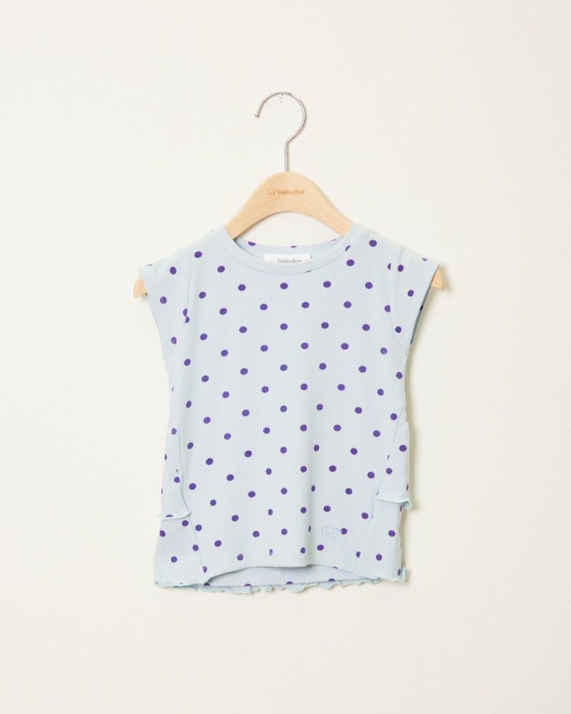 ストレッチ性があり、とても動きやすい水玉プリントのTシャツです。バックのフリル使いで愛らしさUP! モデル身長: 103 cm 着用サイズ: 100 サイズ Golden Bear Kids カットソー (Kids)