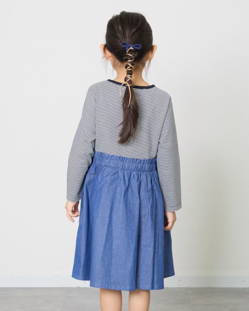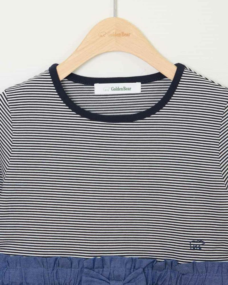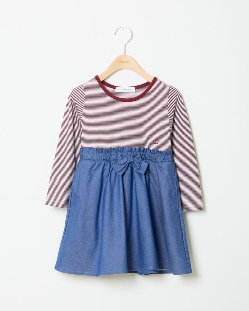 一枚でサマになるボーダー柄切り替えのワンピースです。 シンプルな中にも切替位置にリボン付きチャームを添えてアクセントにしています。 きちんと感があって楽に着られるワンピースは、お出かけにぴったりです。 ガールズモデル身長: 109 cm 着用サイズ: 110 サイズ Golden Bear Kids ワンピース (Kids) 同素材のカットソーはこちら(Kids) 同素材のレディースアイテムはこちら 同素材のメンズアイテムはこちら 家族コーディネートアイテムはこちら