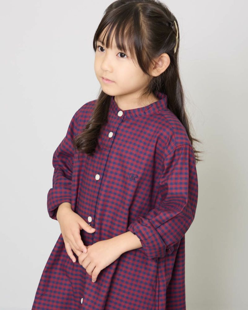 一枚で季節感のあるお出かけコーデが完成するチェックワンピースです。 かっちりしすぎないよう、襟をバンドカラーにし、優しい表情に仕上げているのもポイントです。 あたたかみのある風合いと柔らかな肌触りで、前を開けて羽織としても着用できます。 ガールズモデル身長:109cm 着用サイズ:レッド / 120サイズ ネイビー / 110サイズ Golden Bear Kids ワンピース (Kids) ギンガムチェックシャツ(Kids)はこちら レディースサイズはこちら 家族コーディネートアイテムはこちら