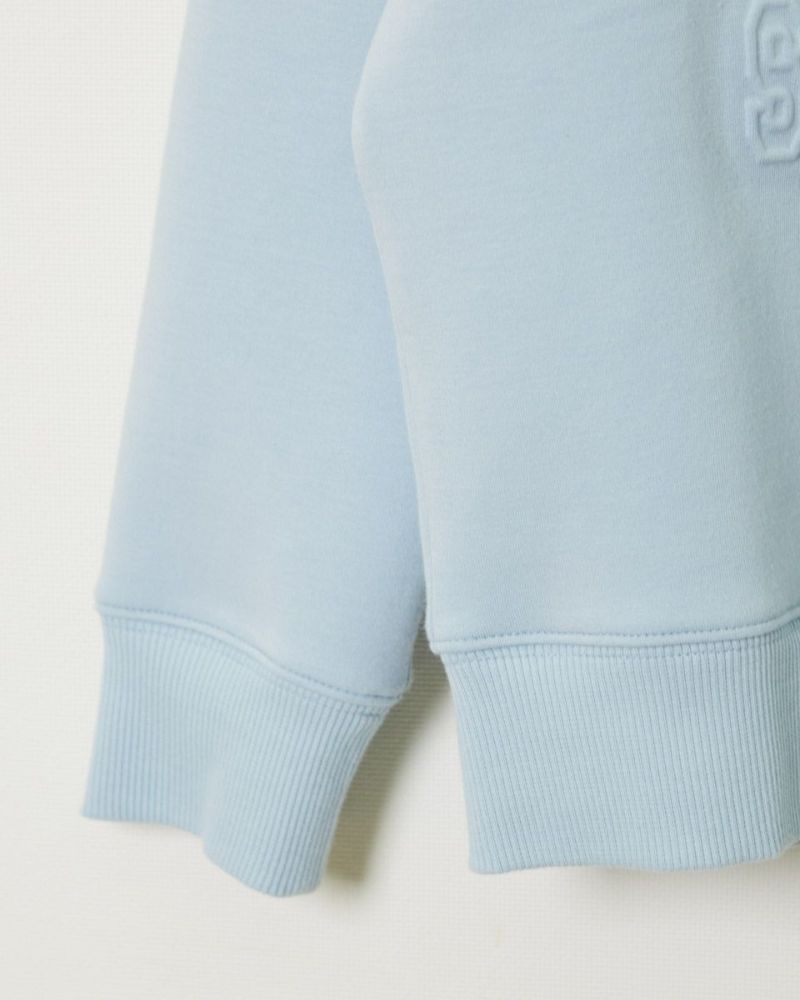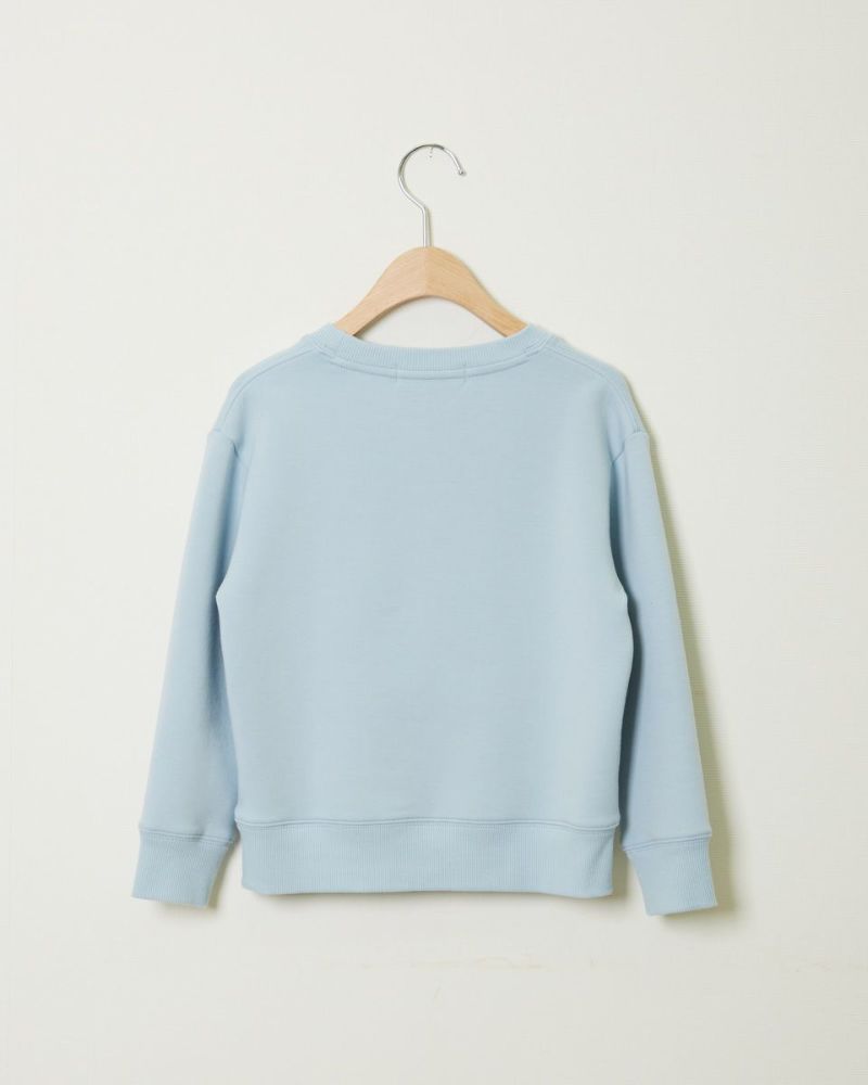 柔らかなベージュとライトブルーが春らしいトップスです。