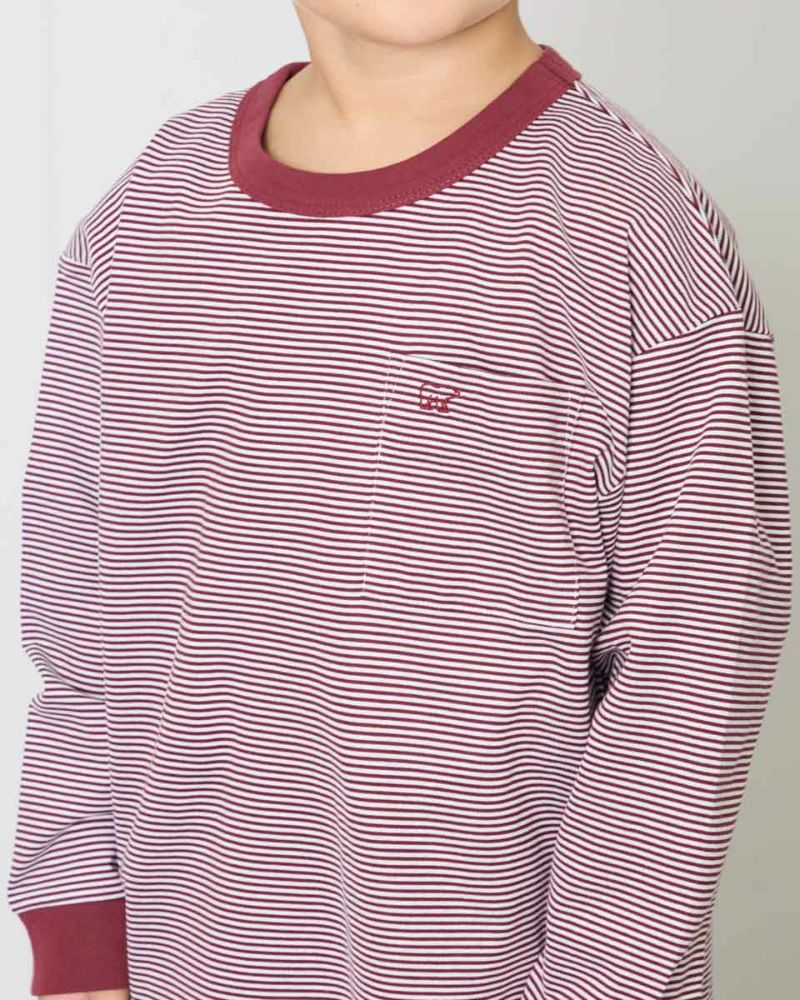 さらっとして肌なじみの良い綿100%の天竺を使用したミジンボーダーのTシャツです。 均等なボーダーがアクセントに、一枚でもインナーとしても使えます。 袖と襟の引き締め配色カラーもポイントです。 モデル身長: 108 cm 着用サイズ: 120 サイズ カットソー (Kids) ワンピース (Kids)はこちら レディースサイズはこちら メンズサイズはこちら 家族コーディネートアイテムはこちら