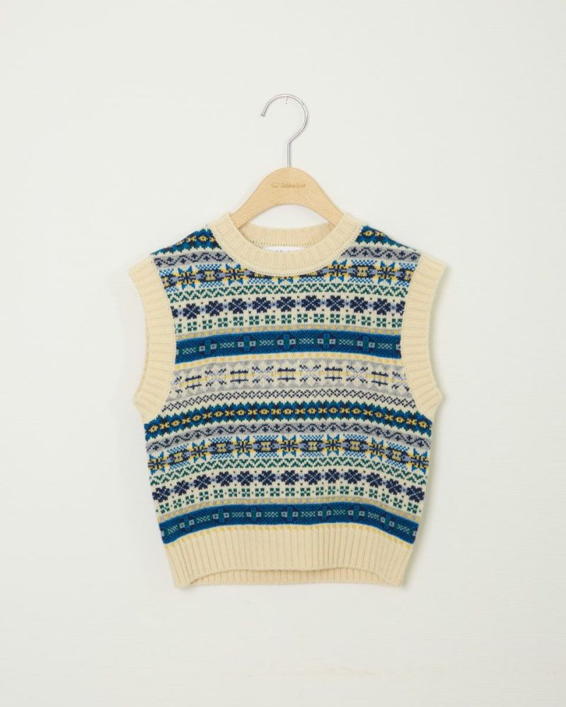 どこか懐かしく温かみのあるフェアアイル柄のニットベストです。 シャツやカットソーとのレイヤードで、寒い季節のコートインにもちょうどいいアイテムです。 ファミリー企画としておそろいの素材感で展開しています。 ボーイズモデル身長: 108 cm 着用サイズ: 110 サイズ ニット (Kids) 同素材のレディースはこちら 同素材のメンズはこちら 家族コーディネートアイテムはこちら