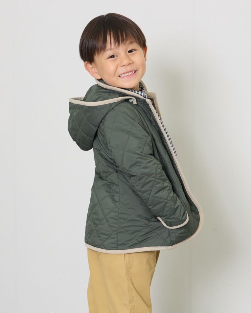 スッキリとしたダイヤ型の中綿キルトジャケットです。