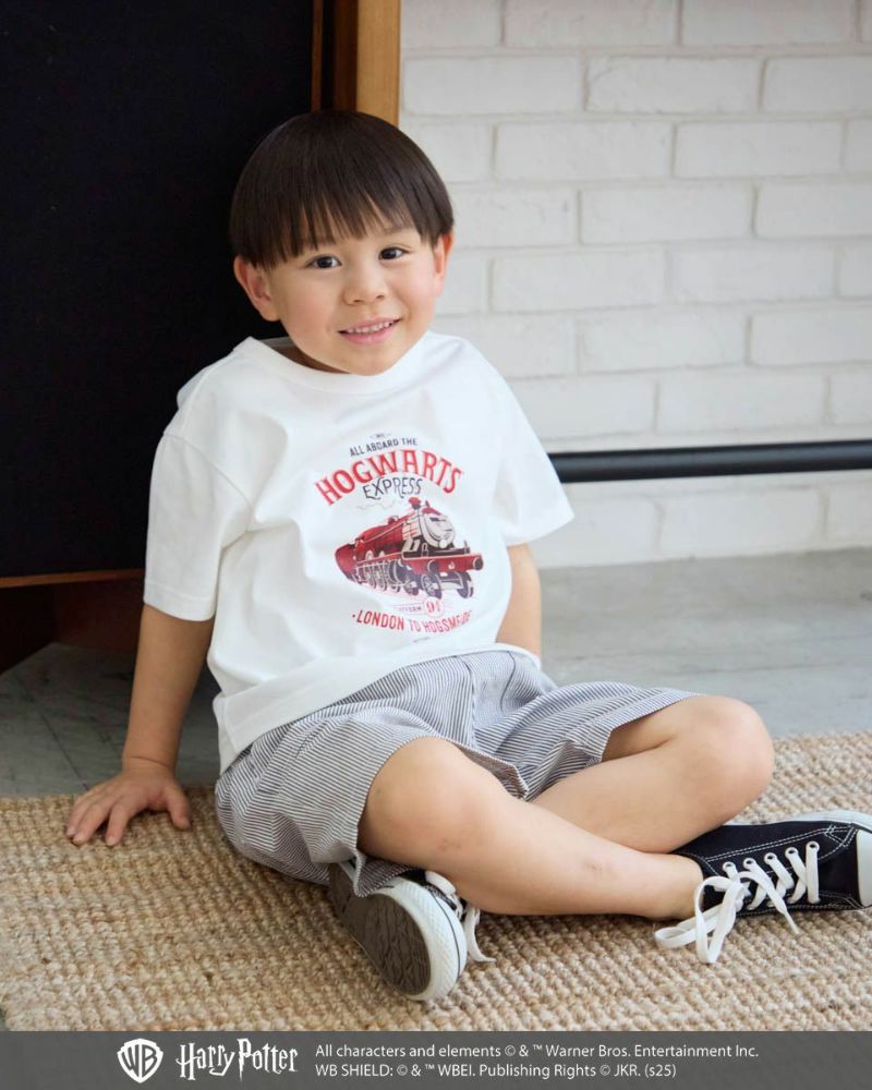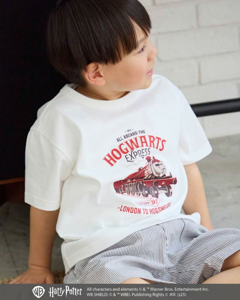 アイボリーのTシャツには、ホグワーツ特急や、9と3/4番線のグラフィックをプリントし、レトロポップな雰囲気に。