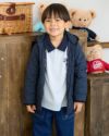 襟元や袖口に施されたコーデュロイの配色パイピングが、全体のデザインをキリッと引き締める絶妙なポイントになっています。