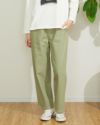 綿100%のツイルを使用したアンクル丈のストレートパンツです。ストレッチの入っていない素材ですので、30cmの深い股上で、ヒップから裾にかけて全体にゆったりとした分量をとっています。ウエストは開き無しのギャザーゴム仕様で内側に紐を通しています。 モデル身長: 166 cm 着用サイズ: S サイズ Golden Bear Ladies' ボトムス (Ladies') 【着用アイテム】467Q2403 プリントTシャツ