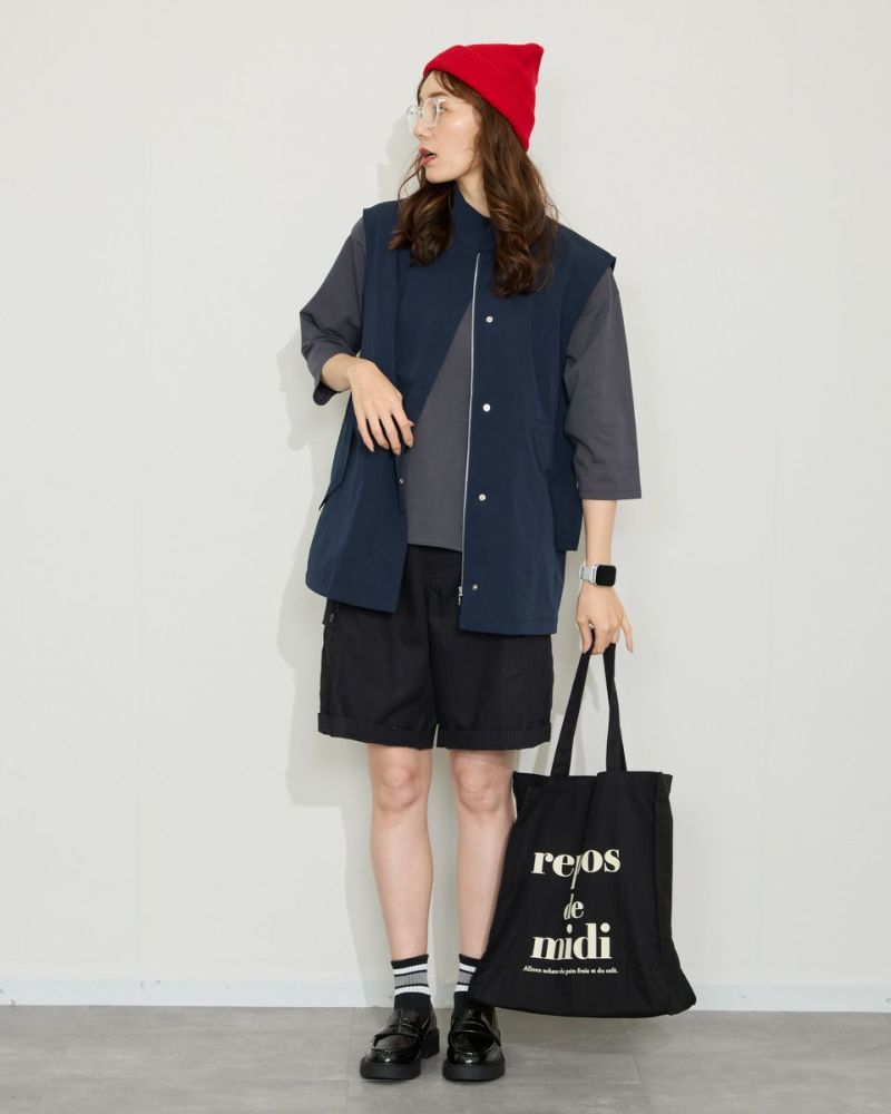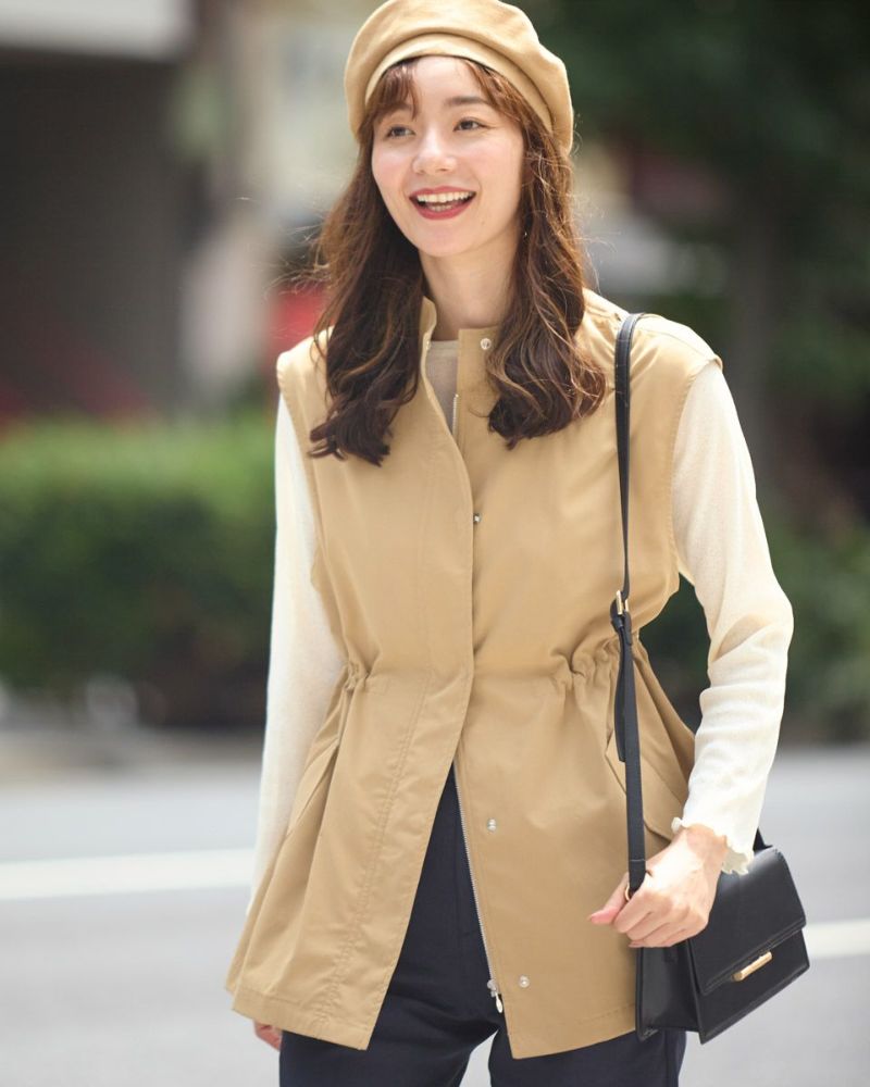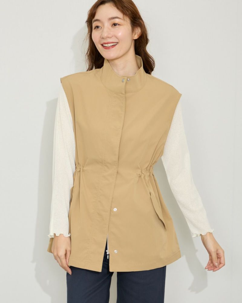 レイヤードスタイルに欠かせない布帛ベストです。Tシャツやシャツに重ねるだけでこなれ感がアップします。ドロストで動きもつけられ、メリハリシルエットで女性らしく着こなせます。 モデル身長: 171 cm 着用サイズ: M サイズ Golden Bear Ladies' アウター (Ladies') 【着用アイテム】467QB402 七分袖GB天竺Tシャツ 467QB413 テレコTシャツ 467QB712 折山プレスストレートパンツ