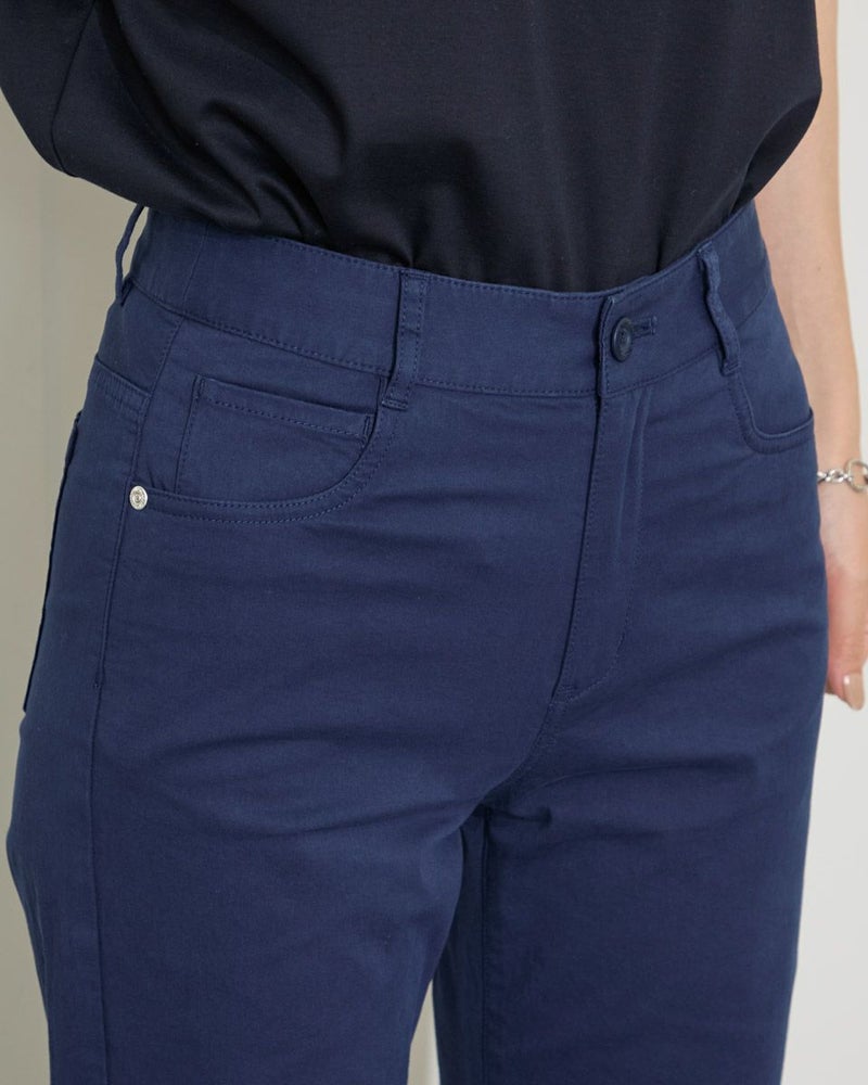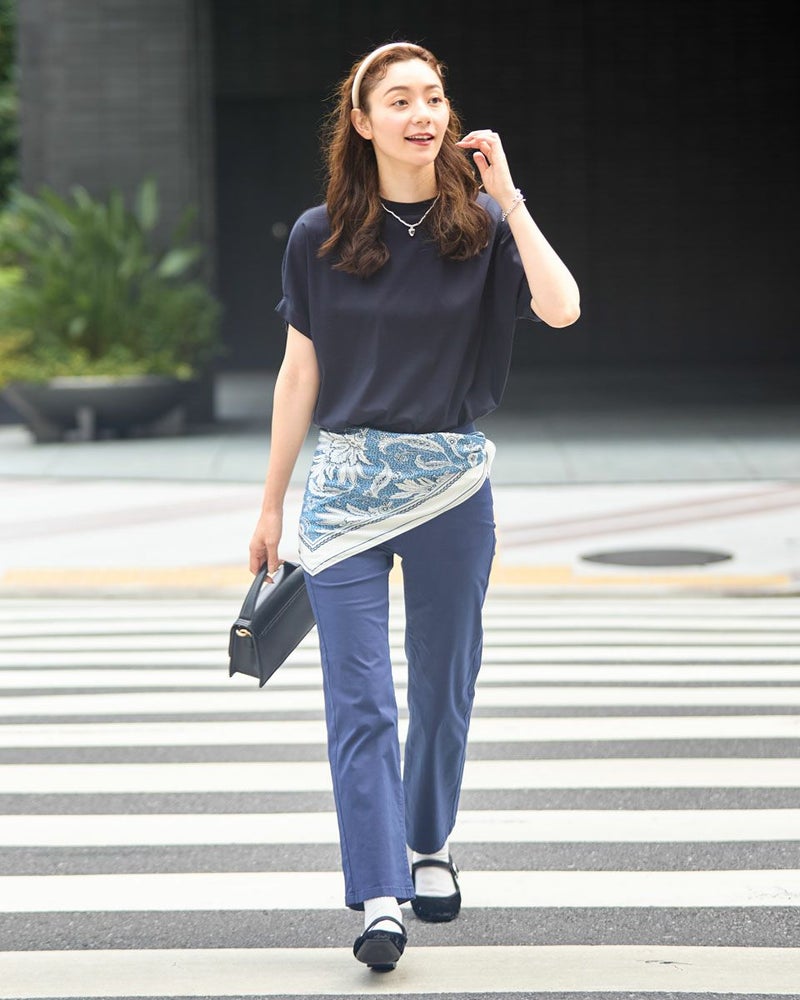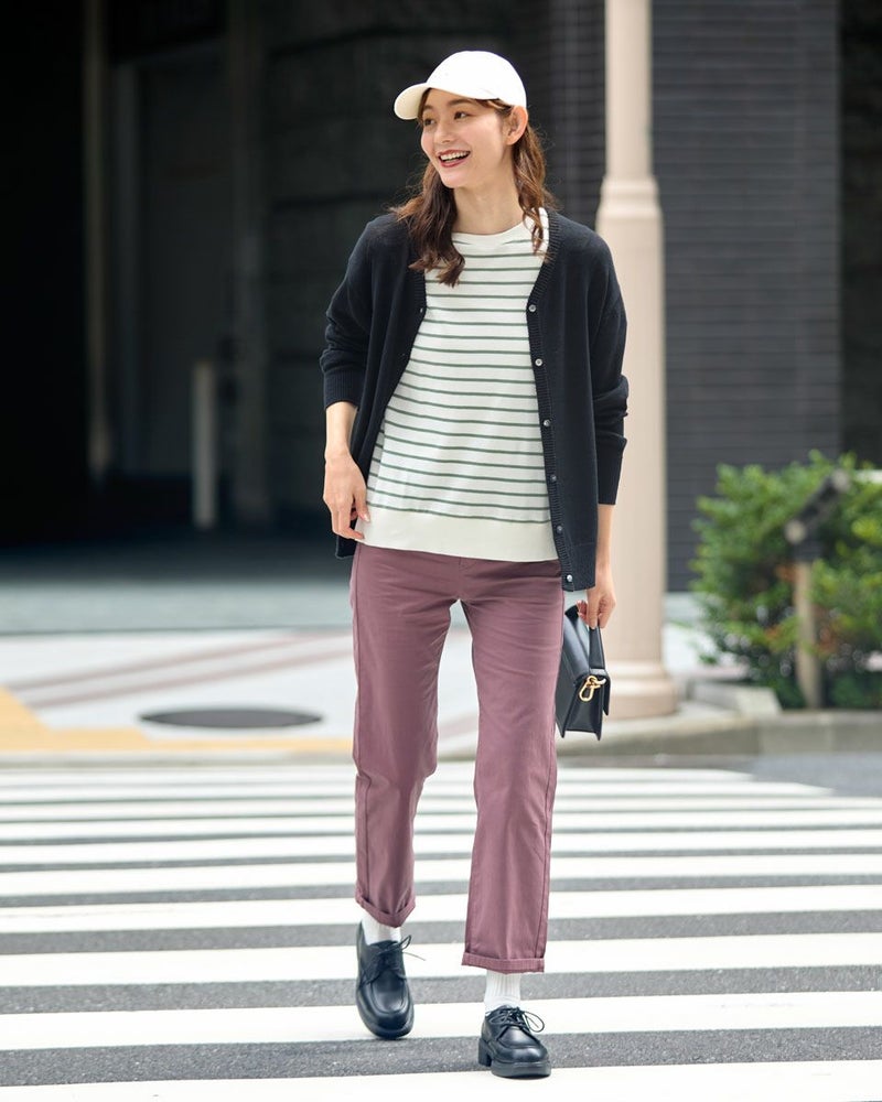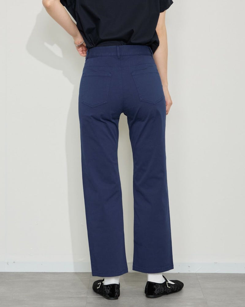 綿ストレッチのツイルを使用したパンツです。シルエットはベーシックなストレートラインで膝から裾にかけてほぼ真っ直ぐで、股上はやや深めです。 モデル身長: 171 cm 着用サイズ: M サイズ Golden Bear WOMEN ボトムス (WOMEN) 【着用アイテム】467QA405 リブ使いボーダーTシャツ 467QB610 カーディガン 468QB461 ハイネックプルオーバー