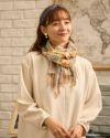 薄手で柔らかなWOOLを使用したチェックストールです。ジャカード織が表情を豊かにコーディネートのアクセントになります。 Golden Bear Ladies' アクセサリ (Ladies') 【着用アイテム】467QD431 ロゴプルオーバー 468QD650 クルーネックPO 467QE702 ストレートパンツ 468QD750 ストレートパンツ