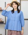 ポリエステル混のさらっとしたサッカー素材を使用。切り替えた部分から裾に向けて広がるペプラムデザインです。一枚ではもちろん羽織としても活躍する一枚です。 モデル身長: 166 cm 着用サイズ: M サイズ Golden Bear Ladies' ブラウス (Ladies') 【着用アイテム】468R6760 チェックスカート