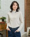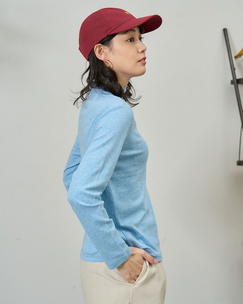 さりげなく光るラメ糸を織り込んだフライス素材のハイネックインナー。柔らかく伸びの良い生地で、肌に心地よくフィットします。控えめなラメが、シンプルなスタイリングに上品なアクセントをプラス。インナーとしての使いやすさにこだわった一枚で、レイヤードのポイント使いに最適です。