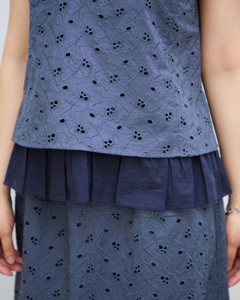 生地全体に刺しゅうや穴の開いたアイレットの連続模様が施されているオーバーレースを使った華やかなブラウス。裏面に別地を付け肌が透けることなく着用が可能。タイトなネックとは反対に腕を出し肌の露出に強弱を付け品の良さや大人っぽさを演出しています。肩先を少し覆った袖口のディティールもポイント。バングルを添えた辛口なコーデやデニムを合わせて甘さを軽減した着こなしもレースが活きて素敵です。 モデル身長: 168 cm 着用サイズ: M サイズ Golden Bear White Label (Ladies') ブラウス (Ladies') 同素材スカートはこちら 【着用アイテム】468R5760 レーススカート 468R4051 トートバッグ