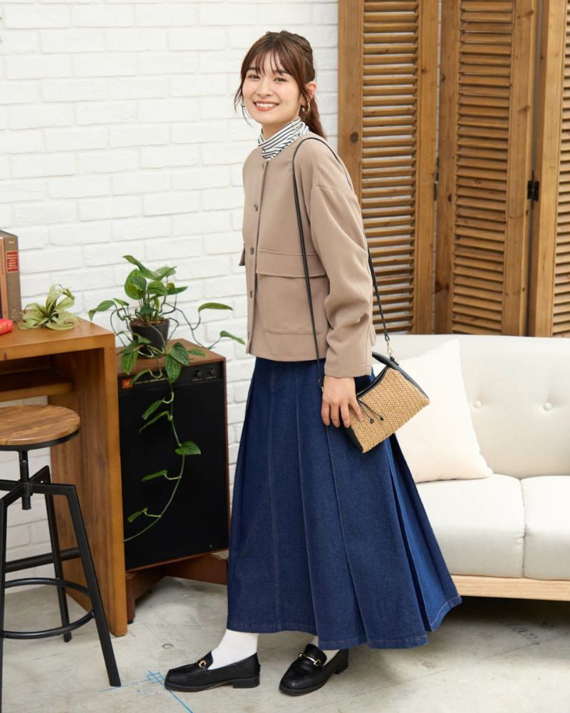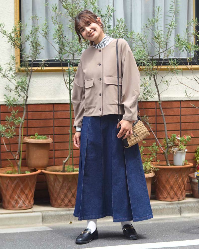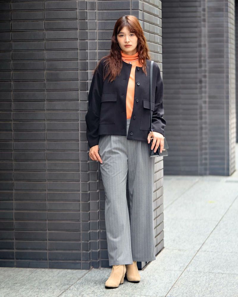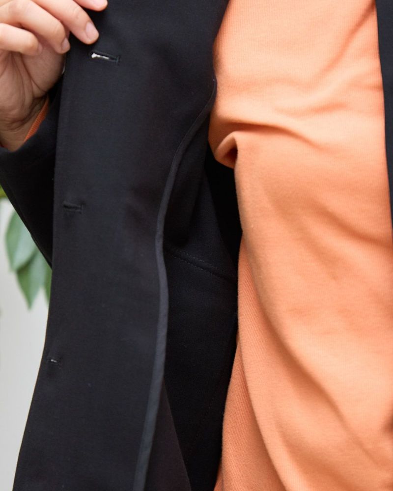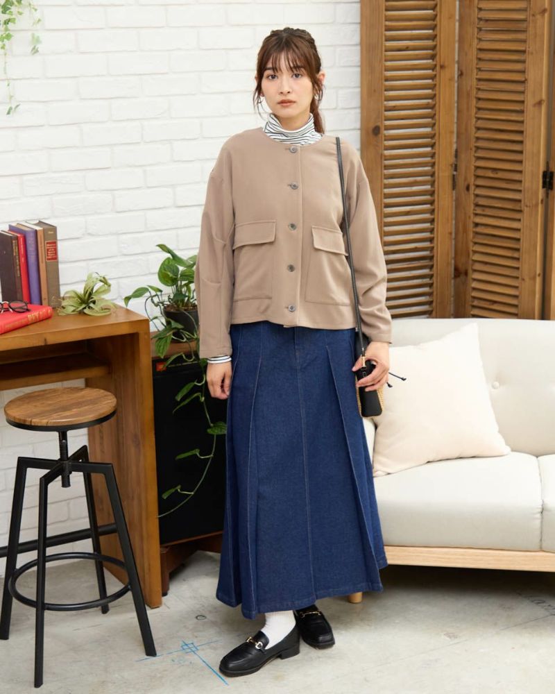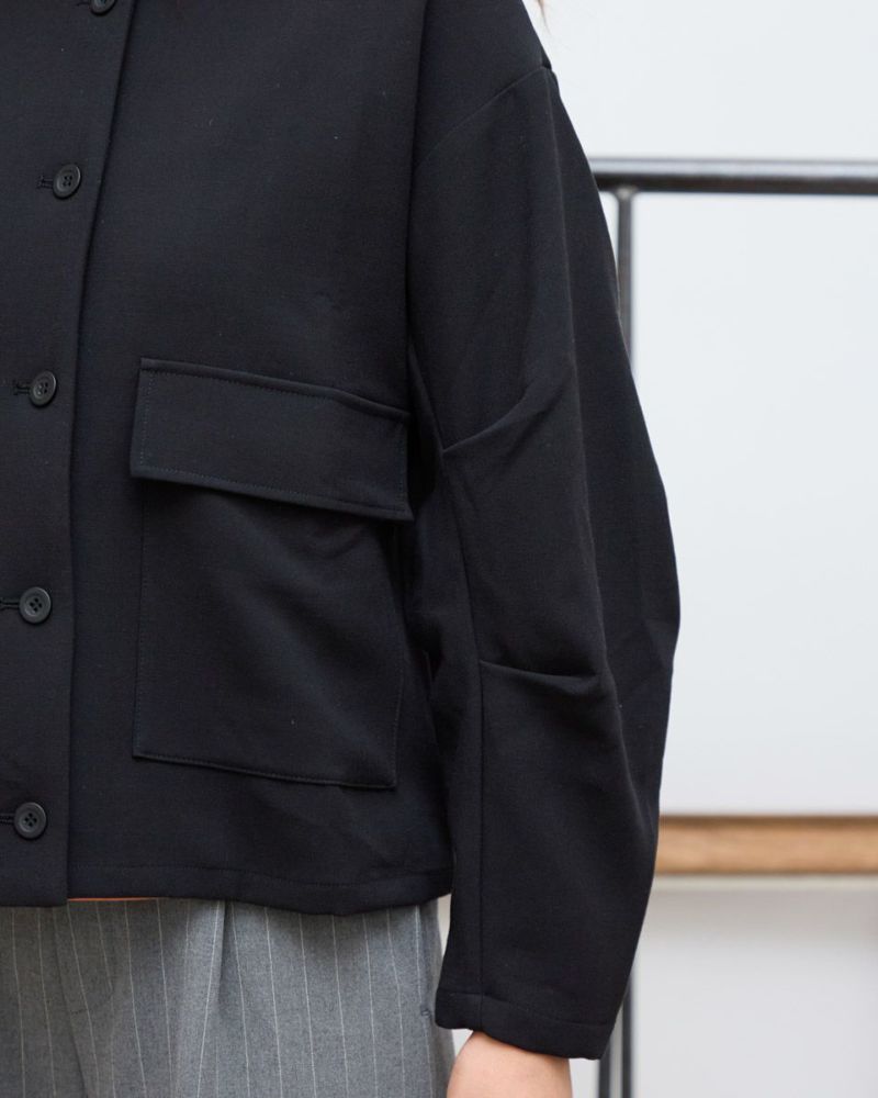 ほどよい肉厚感で保温性のある二重織りの生地を使ったブルゾン。短めの着丈でアクティブ感があり時流の着こなしをお楽しみいただけます。肘に施したタックがアクセントになり羽織るだけでサマになるアイテムです。コンパクトなネックラインがカジュアルさを抑えてくれるので釦をすべて閉じた着方も品がありおすすめです。キメの整った織り目の表面には毛羽感がないため、気温差のあるスイッチシーズンからお使いいただけます。他のアイテムと合わせやすいブラックとモカのカラー展開でオフィスやお子様の送迎での着用にもピッタリです。 モデル身長: 168 cm 着用サイズ: M サイズ Golden Bear White Label (Ladies') アウター (Ladies') 【着用アイテム】468RC460 タートルネック 468RC750 ストライプパンツ 468RC751 デニムスカート
