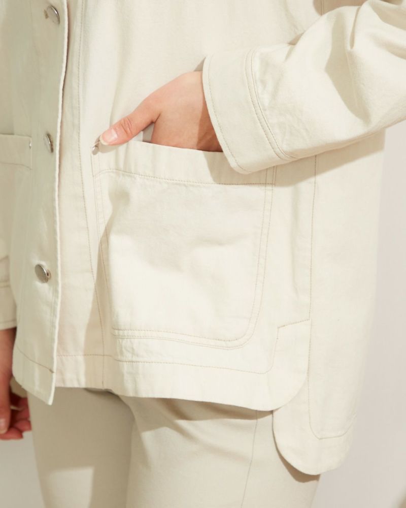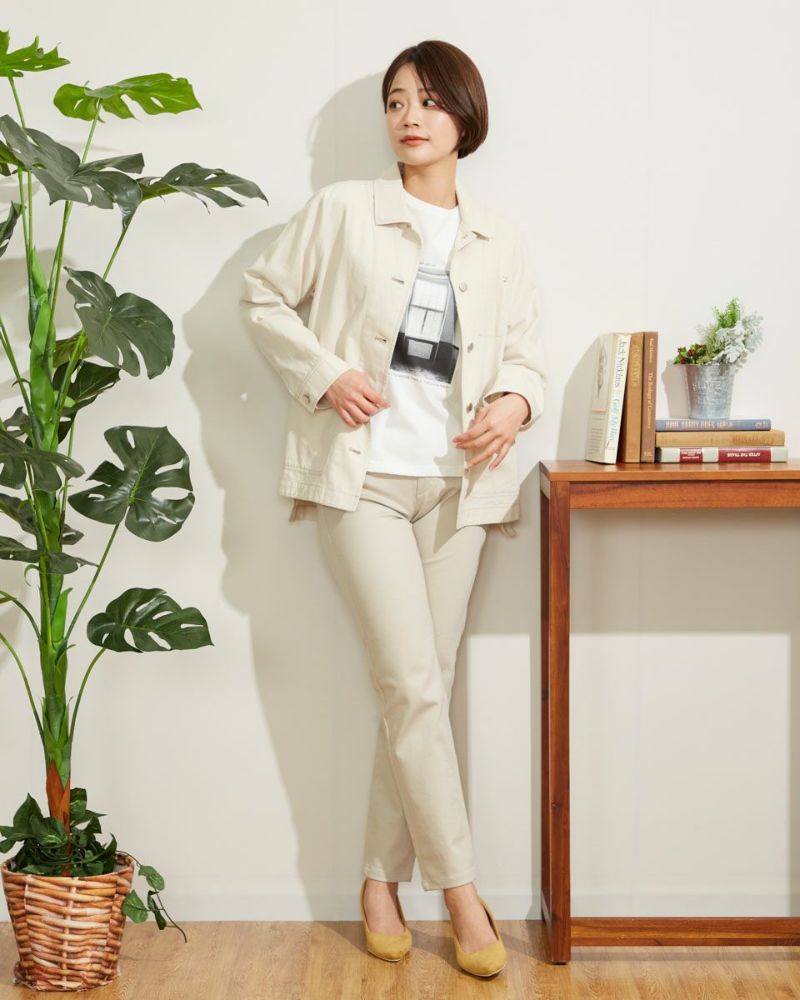 5.5ozの薄いデニムを使用したカバーオールです。襟がシャープに首に沿うように後ろ襟には月こし(半台襟)を付けています。裾は両脇の重ねたスリットがポイントで、着丈は前後差を付けています。左胸のポケットは内ポケットになります。前中心タック釦開きで釦にはブランドロゴの刻印を入れています。 モデル身長: 167 cm 着用サイズ: M サイズ 同デザイン通常サイズはこちら Golden Bear QUEEN SIZE(Ladies' 大きいサイズ ) アウター (Ladies')