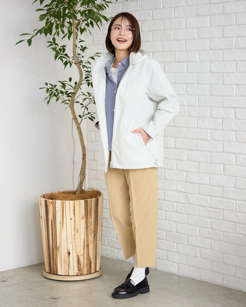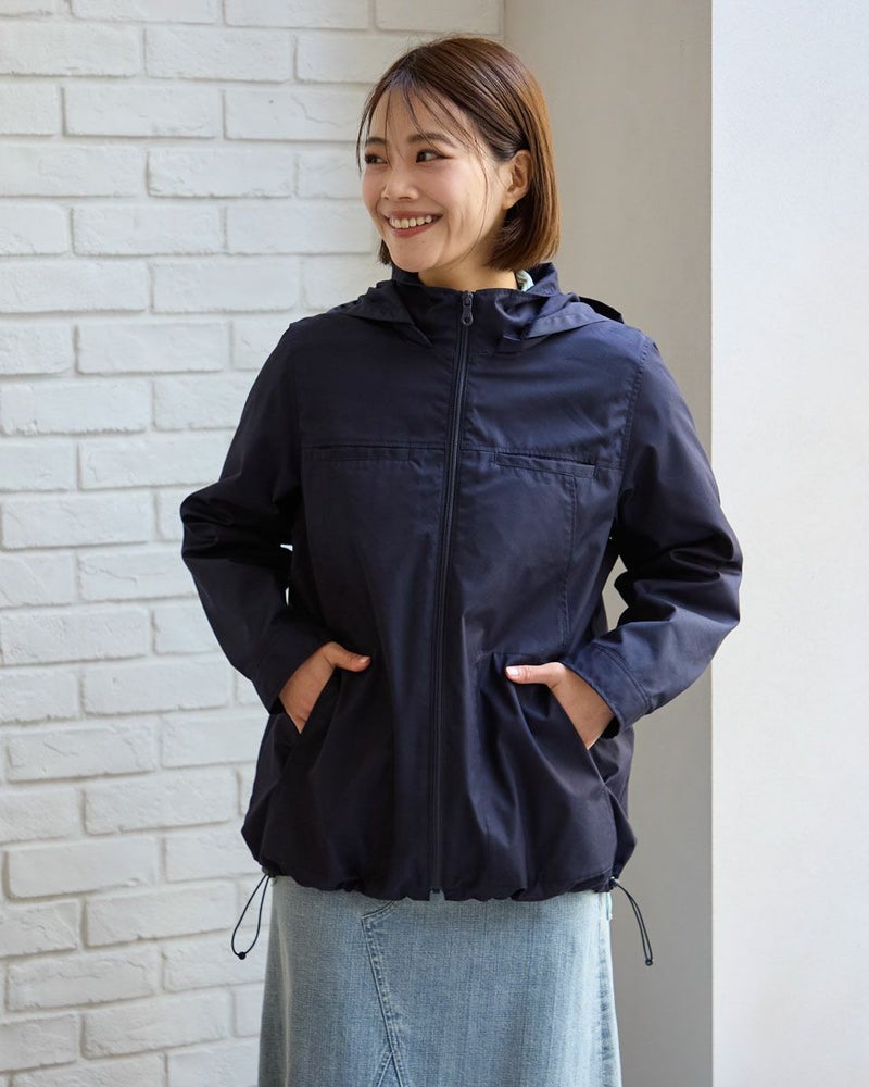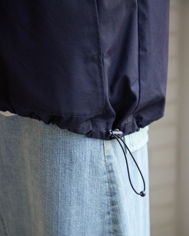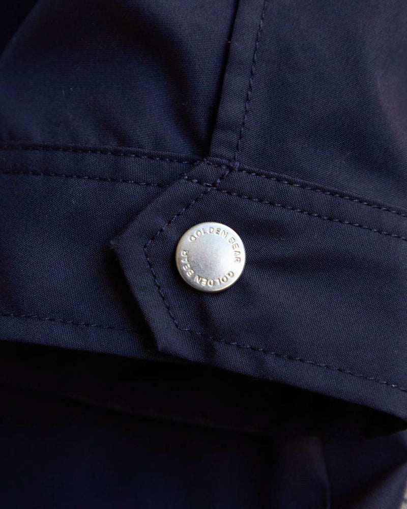 綿ポリエステルのグログランタフタを使用したマウンテンパーカです。ポリエステルは再生ポリエステルを使用してます。裏無しの一枚仕立てで、ファスナー開き、フードは取り外し可能です。後ろヨークの襟ぐりに身頃と同色のロゴ刺繍が入ります。裾のゴム紐を絞って頂くと分量のあるボトムとも合わせ易いです。 モデル身長: 167 cm 着用サイズ: M サイズ Golden Bear QUEEN SIZE(WOMEN 大きいサイズ ) アウター (WOMEN) 同デザイン通常サイズはこちら