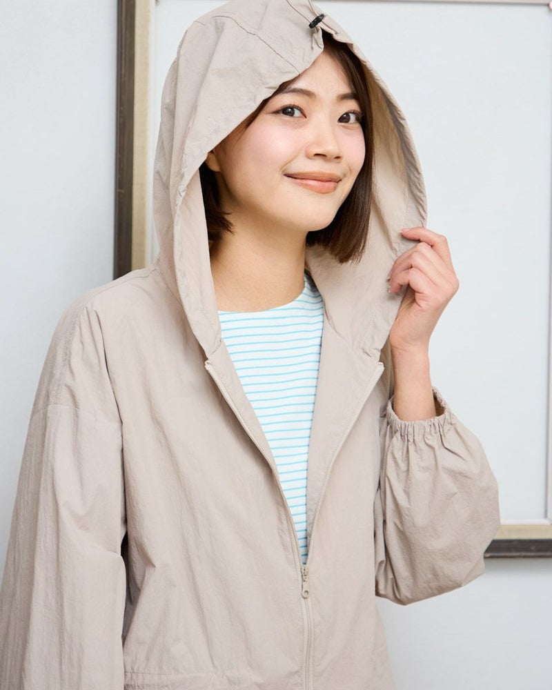薄手で軽く、さらりと羽織れるライトアウター。スポーティなディテールをタウンユースにアレンジし、日常使いにもご旅行やレジャーでも活躍する一枚に仕上げました。持ち運びにも便利で、日差しや急な気温の変化にも対応できます。ウエストのドローストリングでシルエットのアレンジも楽しめる、機能性とデザイン性を兼ね備えた一着です。丈があまり長くないので、ワイドシルエットのパンツやスカート、ワンピーススタイルとのコーディネートも楽しめます。