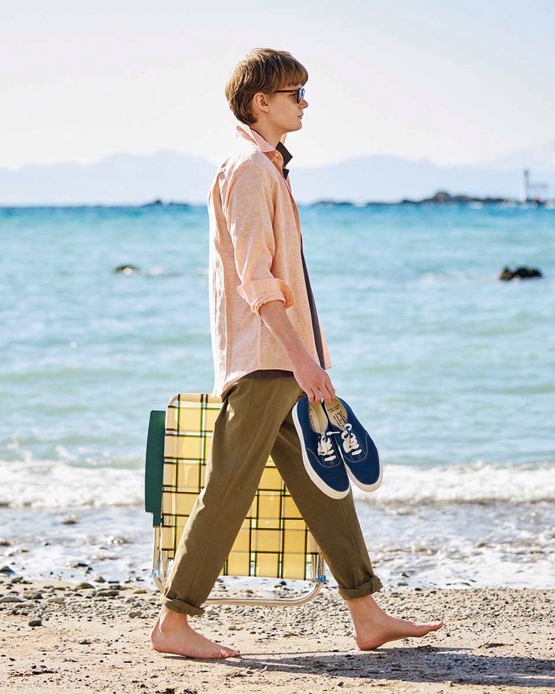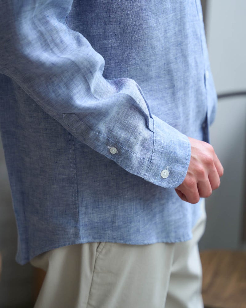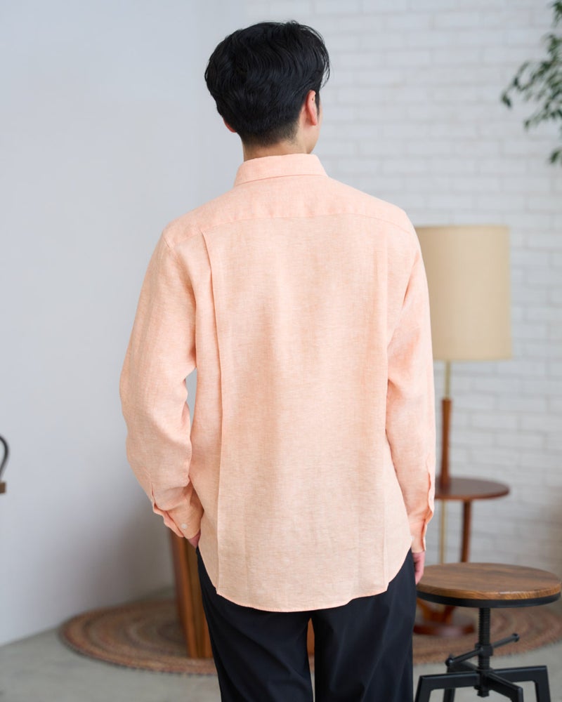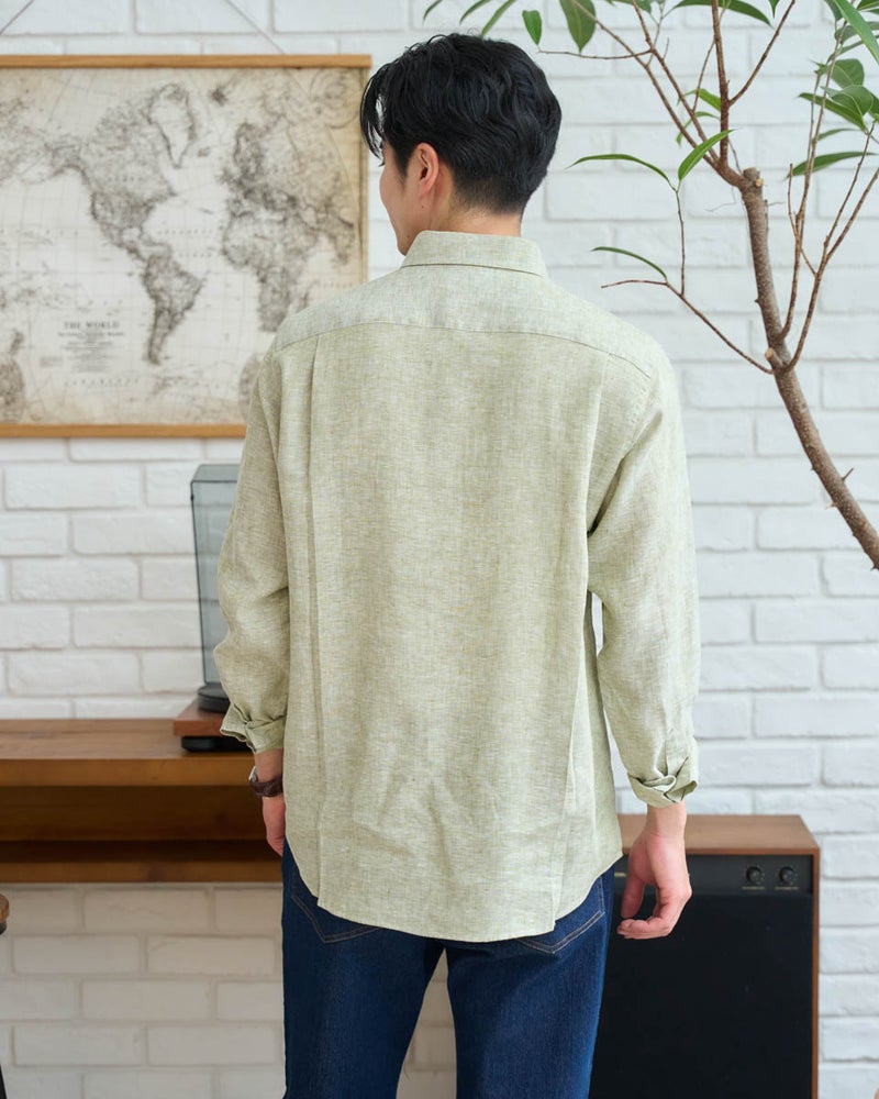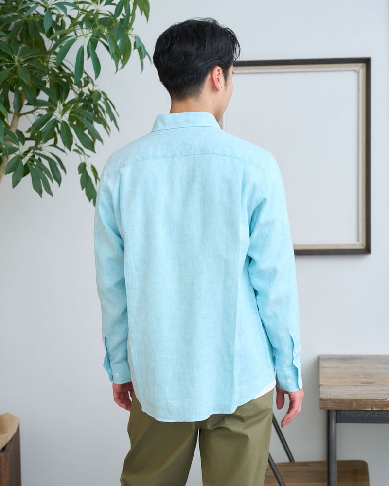 シワになりにくいフレンチリネン100%を使用したボタンダウン襟シャツです。柔らかな肌触りと通気性に優れているのが特徴です。イージーケア性に優れており、アイロンがけをしなくてもシワを気にすることなく着用いただけます。