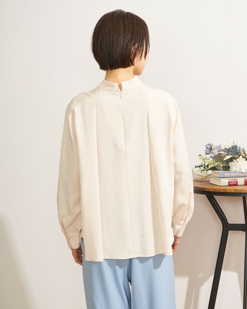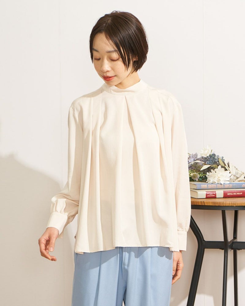 新年のスタート、挨拶を交わす場面や謝恩会など少しかしこまった日にも便利な華やぎブラウスのご紹介です。ポリエステル、レーヨンの生地はほどよい光沢と落ち感で身体のラインを拾い過ぎない所が魅力。肌の露出を抑えたハイネックやフロントで揺れるタックが上品な1着。背中もファスナー仕様のため肌が覗かず安心。強ばりにくいためジャケットインの他、カーディガンとも相性抜群。タックが揺れて動く様子も可愛いので暖かくなったら1枚着を楽しむのもおすすめ。テーパードパンツやジャンパースカートと合わせればフェミニンなオフィススタイルが簡単に決まります。 ※注意点こちらの商品は素材と立体的なデザインの関係で、納品時しわになっている場合がございます。気になる場合はアイロンをお掛いただきますようお願い致します。お手数おかけしますがどうぞよろしくお願いいたします。