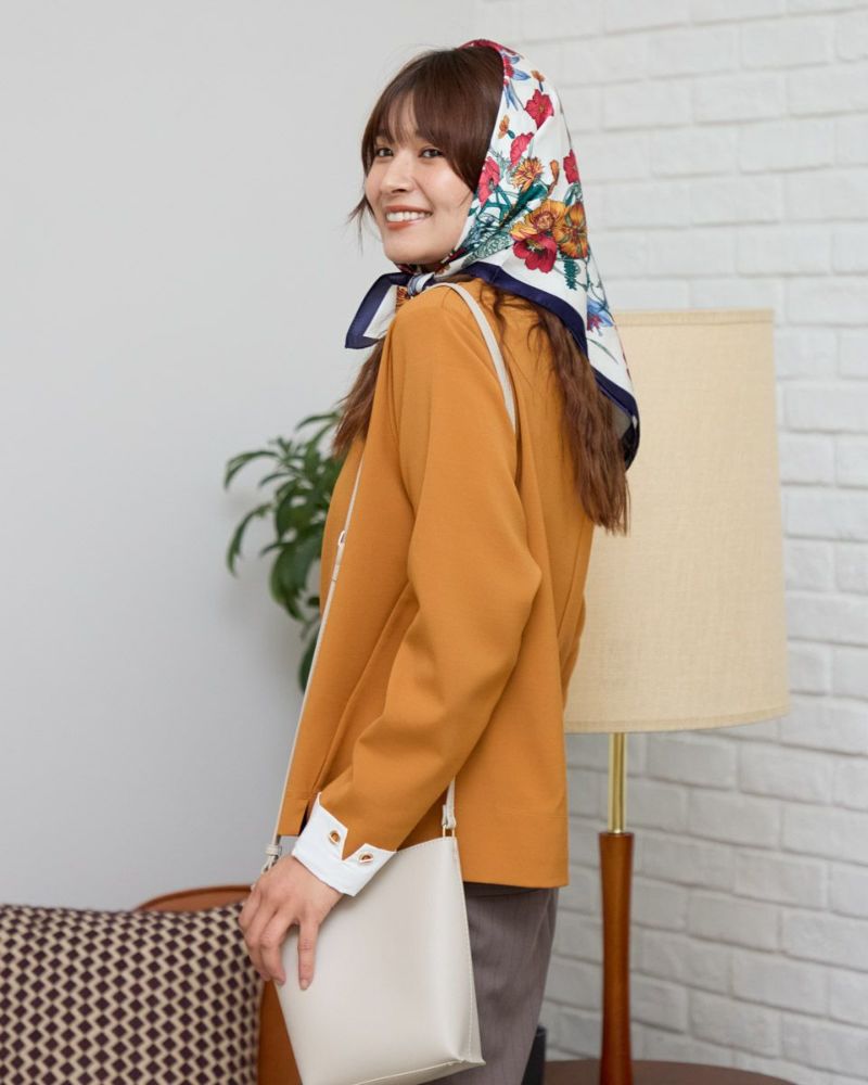 ほどよい厚みと弾力がある2重織りの素材をセレクト。ボディラインを拾わずダレにくいため清潔できちんとした印象のプルオーバー。Tシャツよりも肉厚で裏毛より薄手な生地感は1枚着の季節に便利。身頃から続きで立ち上げたボトルネックと袖口にあしらった別地がポイント。白いシャツを重ね着しているようなクラシックスタイルのアイテム。袖口のメタルチャームが光る様子も華やかなフェミニンさがありオフィスや握手会でお召しになっても素敵です。シックなブラックの使い勝手は抜群!オレンジも顔映りが良くトレンドのブラウンと相性がいいのでおすすめ。