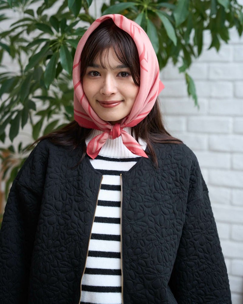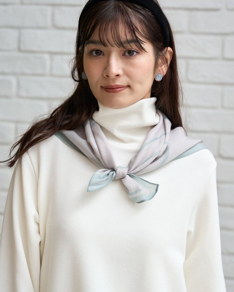 薄く軽やかなポリエステルの生地。細かく広がるツイルの織り目は品がよくコーデのテイストを絞らず使えるスカーフになっています。正方形型で首元に巻く他、今期はレトロ可愛い真知子巻きもこなれた雰囲気が出て素敵です。色の系統を揃えた配色はスカーフだけが浮いて見えないよう、発色も抑えているため顔や洋服に馴染みやすくスカーフ初心者のお客様にもお薦め。WhiteLabelのWとLをデフォルメした柄は躍動感がありシンプルな中にも主張が感じられ、デニムやボーダーなど春のアイテムとも好相性。小物から揃えるショッピングもお薦めです。 Golden Bear White Label (WOMEN) アクセサリ (WOMEN) 【着用アイテム】468RE660 ハイネックボーダープルオーバー 468U1452 キルティングブルゾン