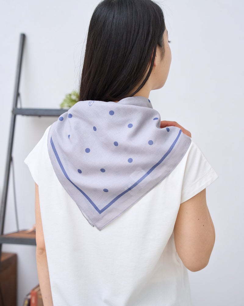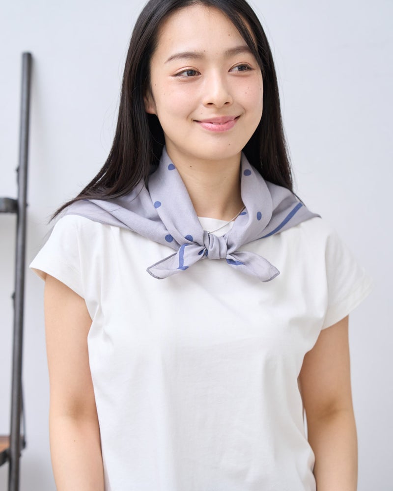 シアー感のあるオーガニックコットンを使用した、肌にも環境にも優しいストールです。海の中で生まれるバブルを表現したポップなポルカドット柄の中に、チャーミングな“クマのバーバラ”が隠れている遊び心あふれるデザインに仕上げました。甘く織られたナチュラルな風合いがありながら、ご家庭で簡単にホームケアができるのも大きな魅力。65cm四方のサイズ感は首元に添えやすく、トレンドの巻き方もバランスよく楽しめるため、4月の爽やかなコーディネートに最適です。軽やかな着用感で、外出時の日除けや冷房対策としてバッグに忍ばせておくのもおすすめです。