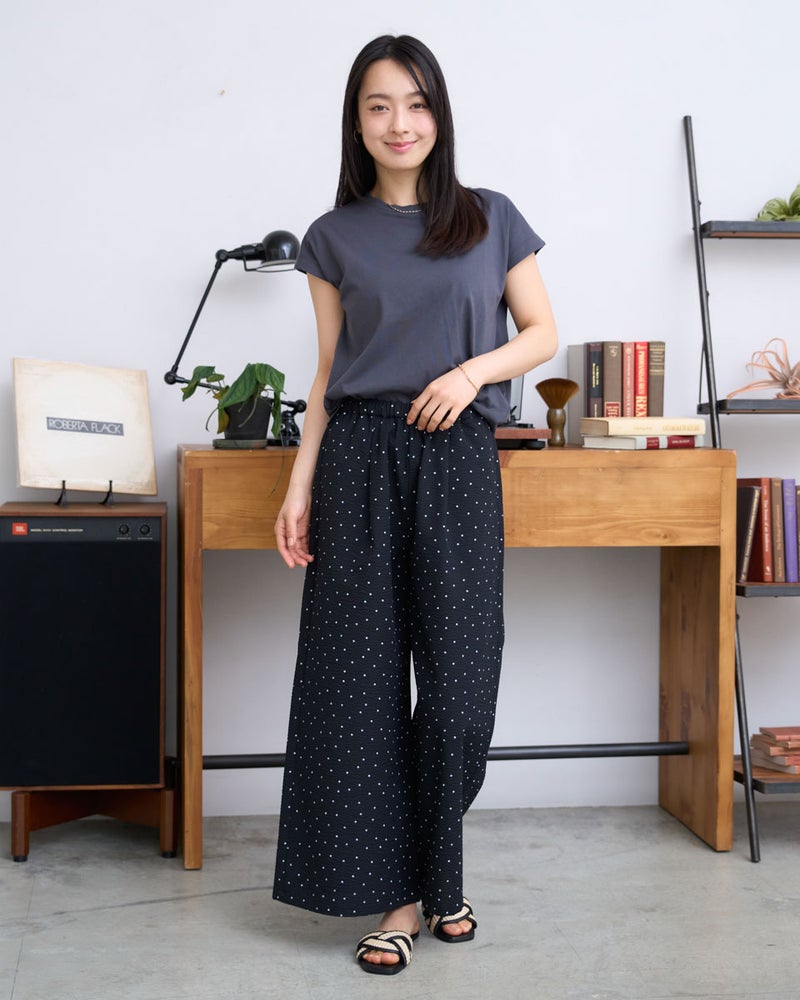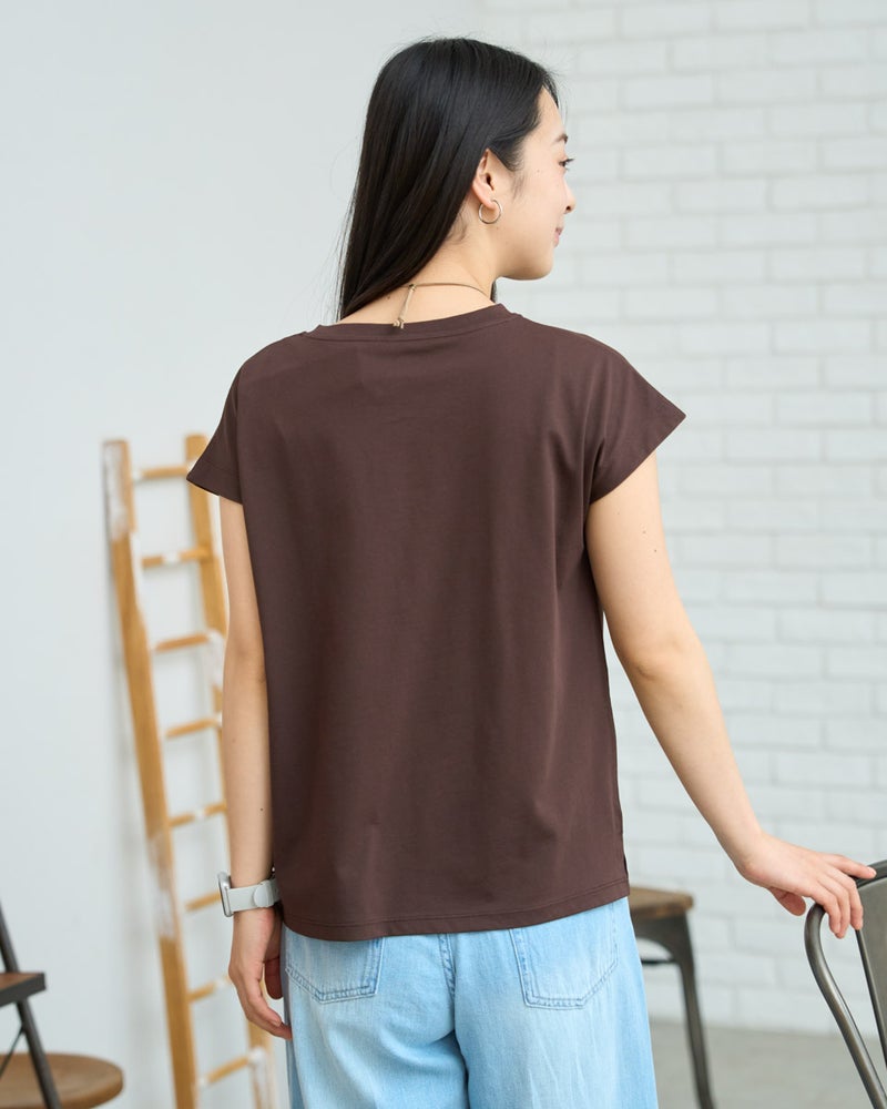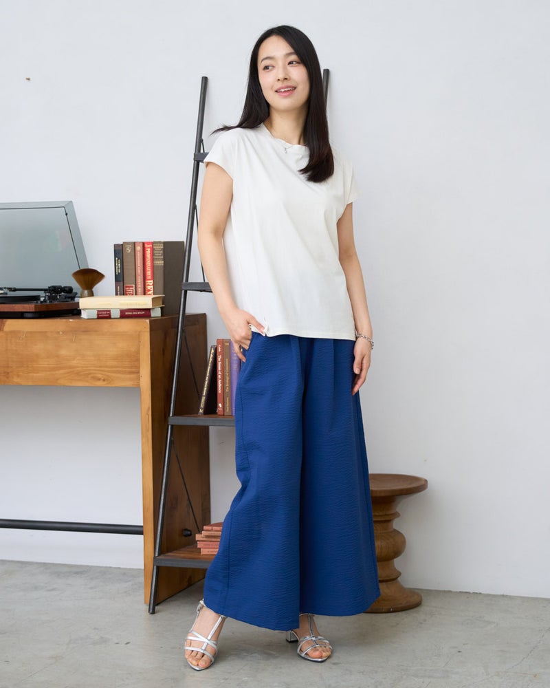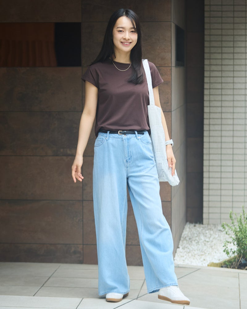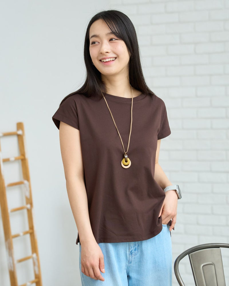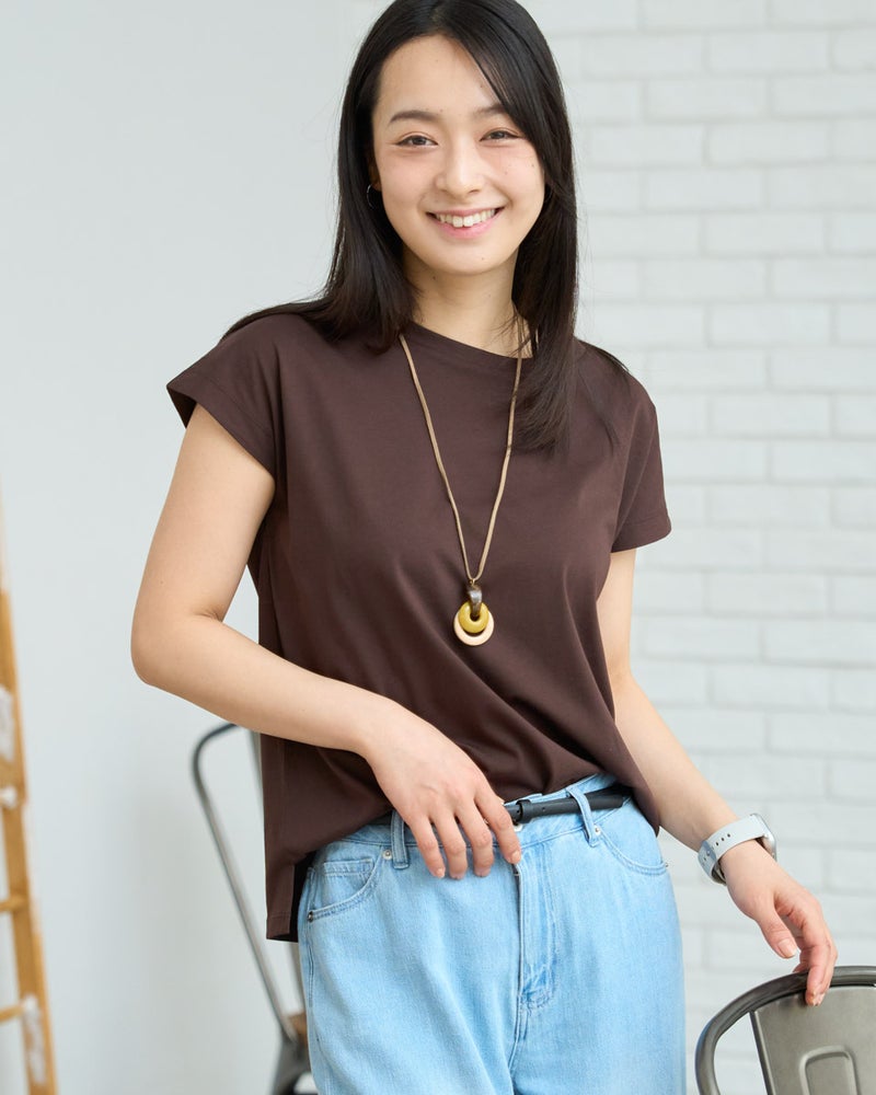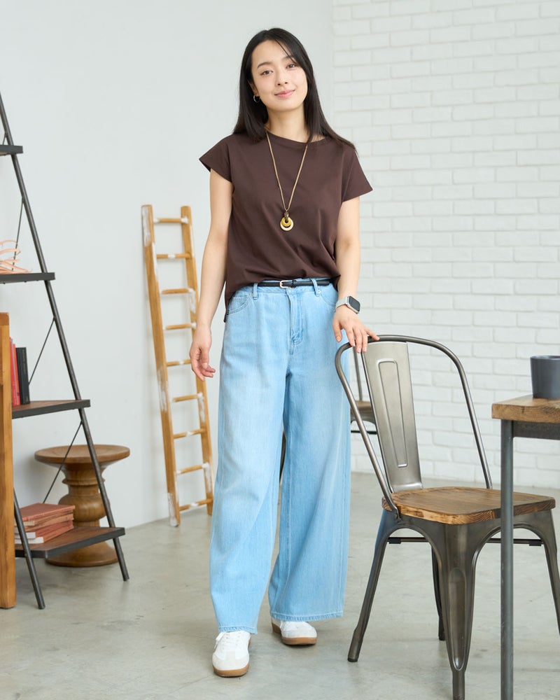 オーガニックコットンを100%使用したフレンチスリーブTシャツ。今年は裾にクマの刺繍を施し、特別な印象が得られるよう仕上げました。オーガニックコットンの柔らかな素材は1枚着として贅沢な一品。程よい開き感の襟ぐりにはアクセサリーも選びません。落ち着いたカラーリングはお洋服との相性も良く、毎日ローテーションで着回ししたくなるはずです。1枚着にして品の良さを味わえるアイテムです。 モデル身長: 167 cm 着用サイズ: M サイズ Golden Bear White Label (WOMEN) カットソー (WOMEN) 【着用アイテム】468U4750 ワイドデニムパンツ 468U4751 ワイドデニムパンツ 468U4760 イージーパンツ 468U4051 レーストートバック