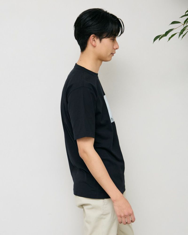 ボディカラーによってプリント位置を変えており、アイボリーはバックプリント、ブラックは正面プリントにしています。