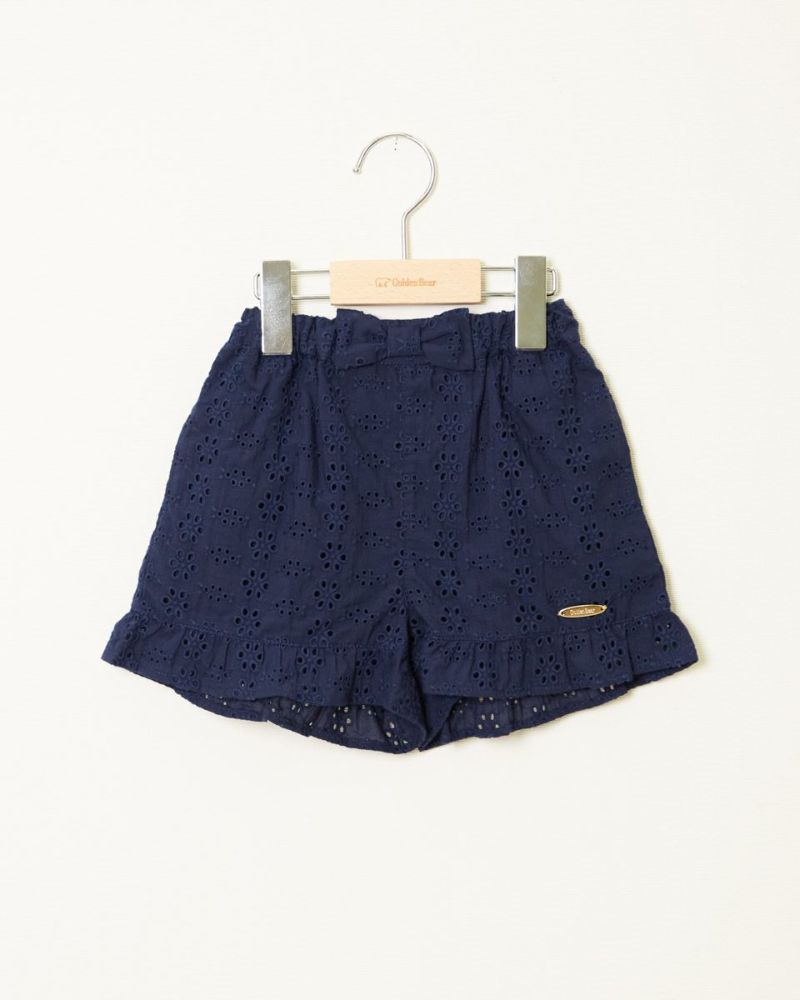 総柄のドビー刺繍の生地を使ったフェミニンスタイルのパンツです。スソのフリルが揺れるキュートなデザインです。ショルダーフリルTシャツ(202J5452)とセットアップをお楽しみいただけます♪ モデル身長: 103 cm 着用サイズ: 100 サイズ セットアップのトップスはこちら Golden Bear KIDS ボトムス (KIDS)
