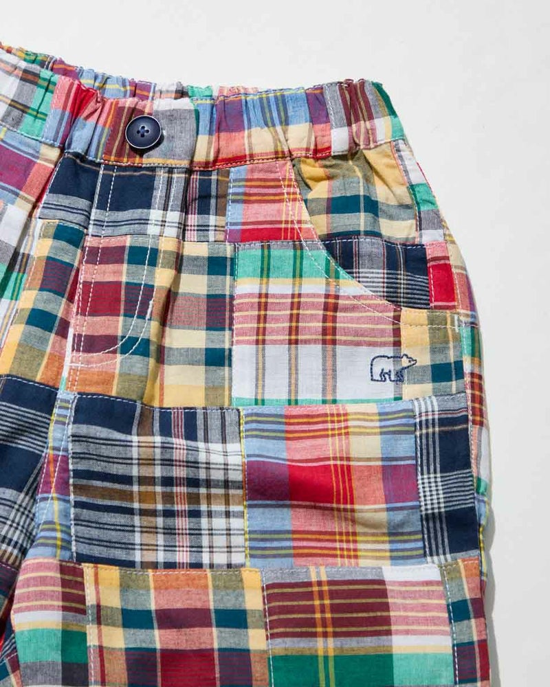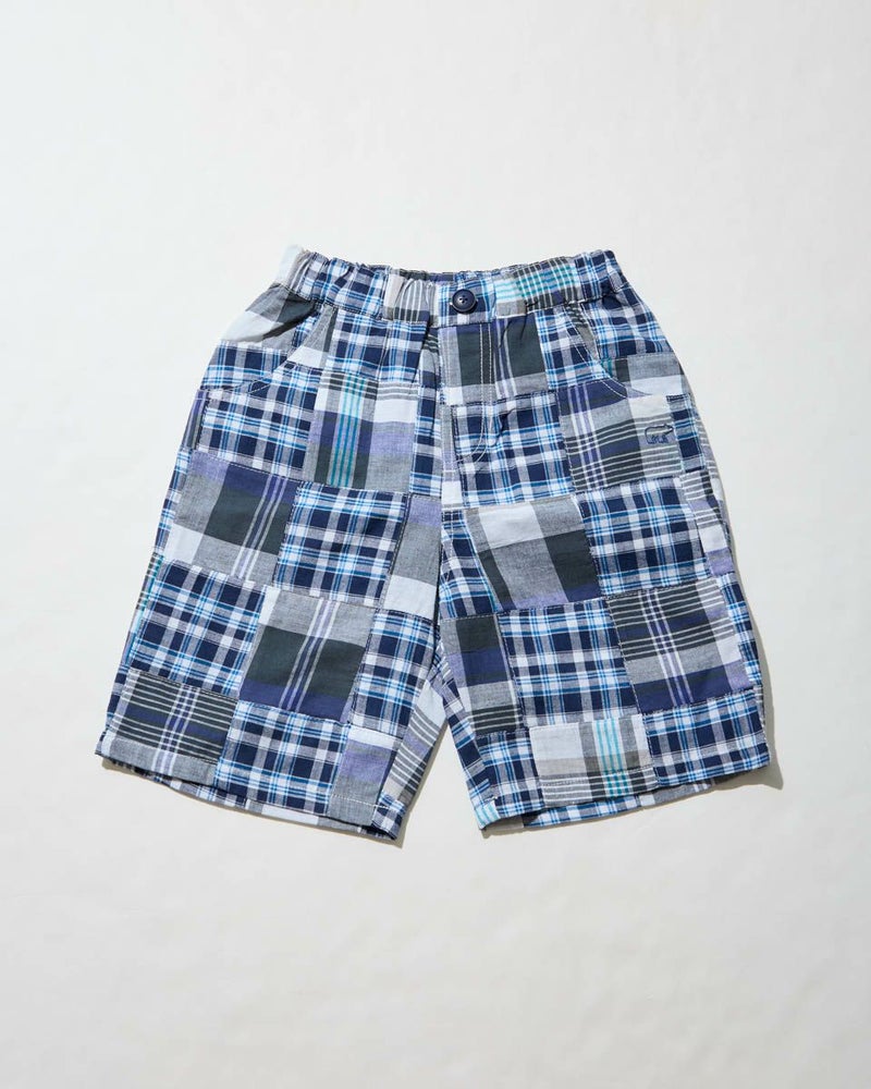 4柄のマドラスチェックをパッチワークしたインド綿のハーフパンツです。涼しさを感じられる春夏らしいアイテムです。 モデル身長: 112 cm 着用サイズ: 120 サイズ Golden Bear KIDS ボトムス (KIDS) キッズ同素材はこちら ウィメンズ同素材はこちら メンズ同素材はこちら 家族コーディネートアイテムはこちら