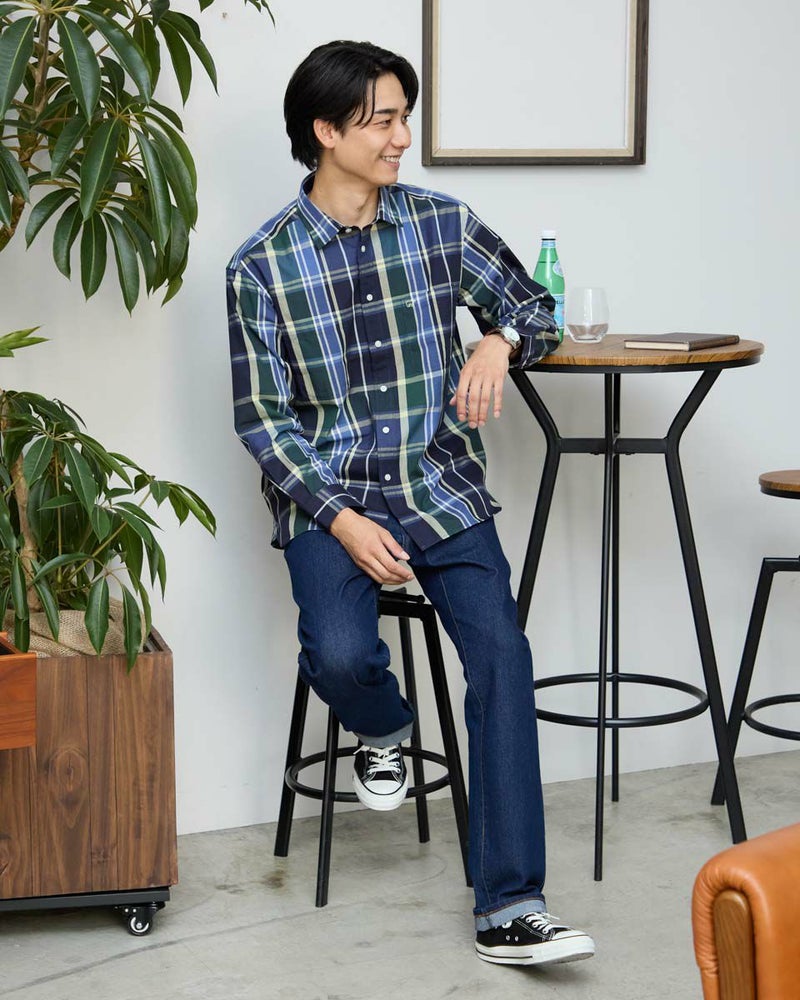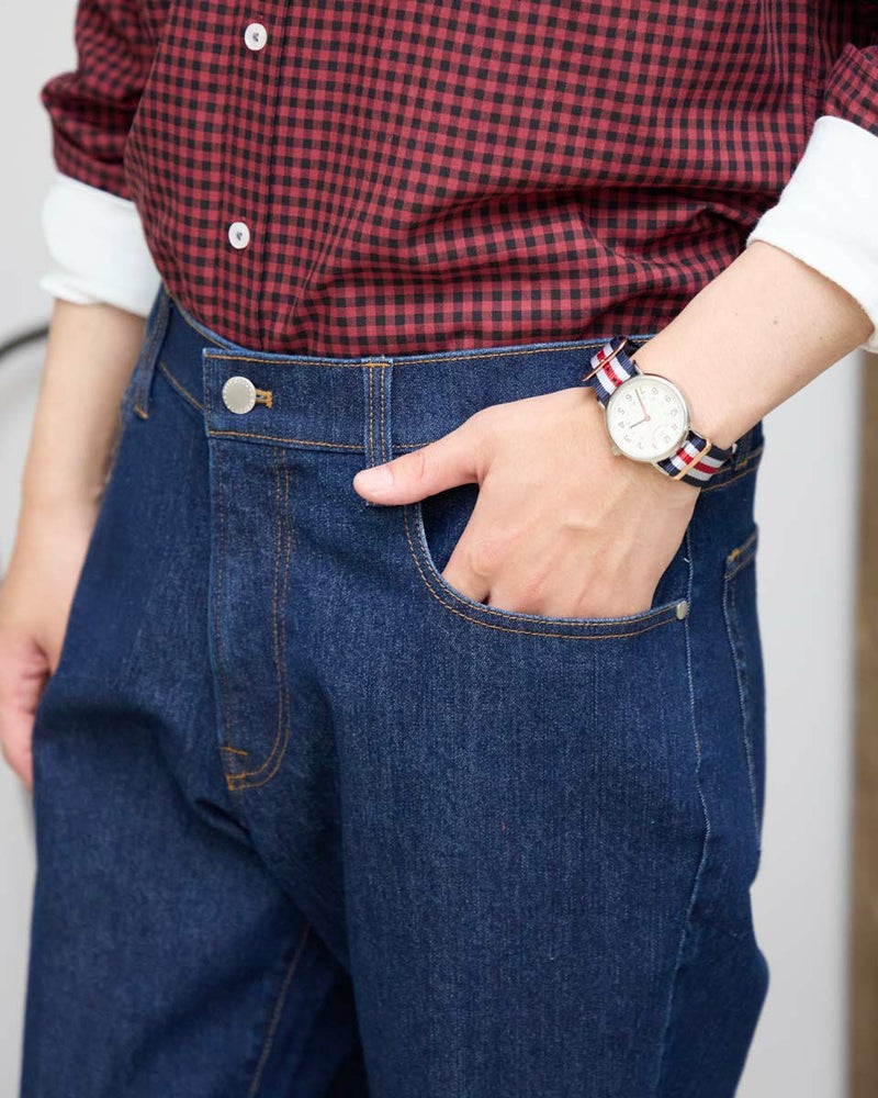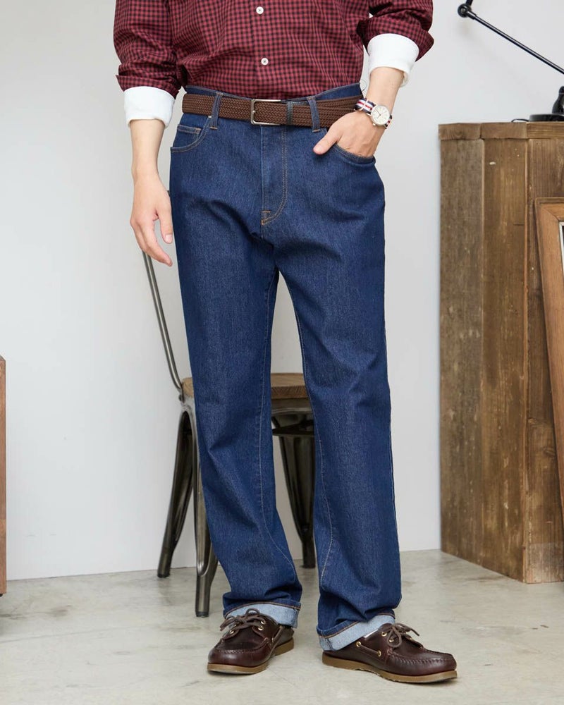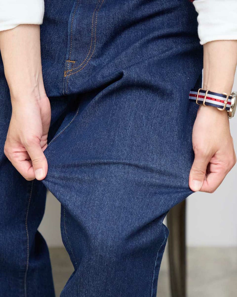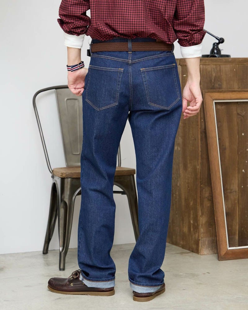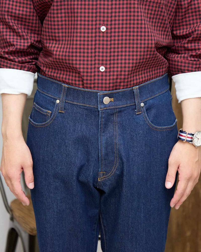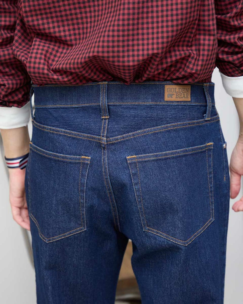 9オンスのインディゴ生地を使用したデニムです。ストレッチに優れた柔らかな風合いの生地を使用しています。ウエスト部分にもストレッチ性があり快適なはき心地です。シルエットはスリムフィット。5ポケットの仕様です。はき込むほどに愛着が深まっていくデニムをお楽しみください。 モデル身長: 180/176 cm 着用サイズ: 82 サイズ Golden Bear MEN ボトムス (MEN) 【着用アイテム】314R8210 チェックシャツ 314R8230 チェックシャツ 314R8403 ラペルカーディガン 314R8411 七分袖Tシャツ 314RC230 オックスシャツ