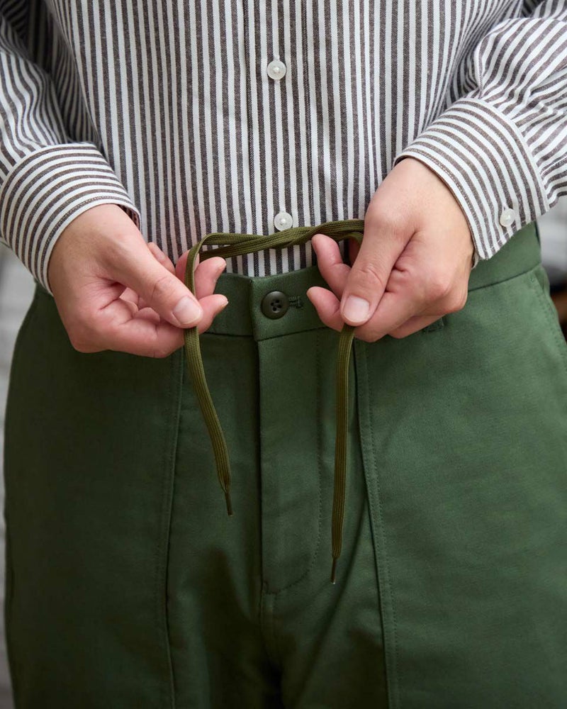 軍パン特有のディテールはそのままに、イージー仕様のベイカーパンツです。フロントの大きなL字型ポケットが特徴的です。王道のアメカジから幅広いカジュアルスタイルをお楽しみいただけます。 モデル身長: 176 cm 着用サイズ: L サイズ Golden Bear MEN ボトムス (MEN) 【着用アイテム】314RD211 ストライプBDシャツ 314RD234 チェックネルシャツ