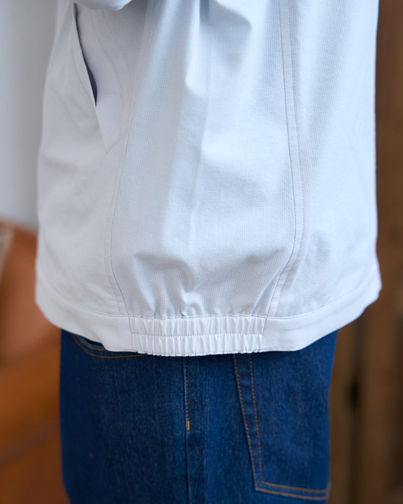 日差しを遮りつつ、風を感じるドライビングジャケットです。生地に穴を開けたメッ シュ素材を使用しています。見た目より軽く、涼しく着用いただけます。お手入れが楽な家庭洗濯が可能です。汗をかいても洗濯機で洗えるのが魅力です。デニムと合わせたカジュアルスタイルがおすすめです。