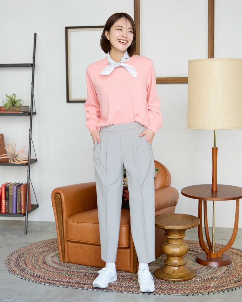 テープでデザインしたようなJourneyのロゴ刺しゅうがポイントのTシャツです。羽織りシャツやカーディガンのインナーにお勧めのアイテムです。 モデル身長: 167 cm 着用サイズ: M サイズ Golden Bear WOMEN カットソー (WOMEN) 【着用アイテム】467R3301 ストライプシャツ 468R3750 ツータックテーパード