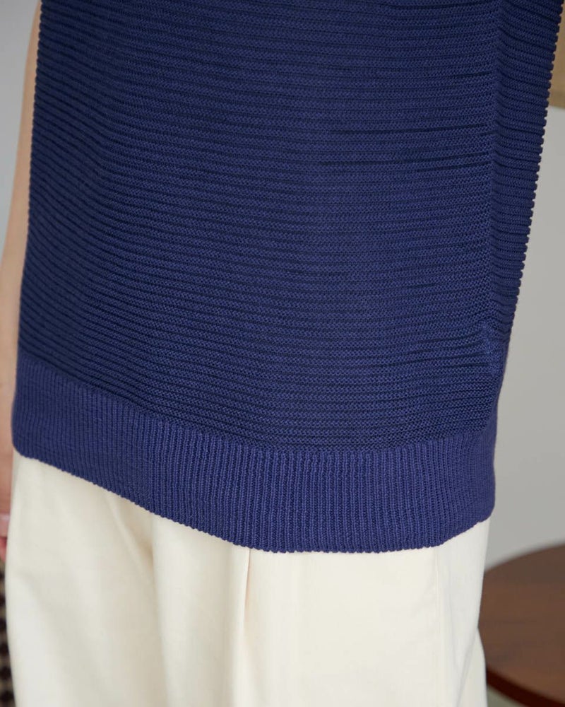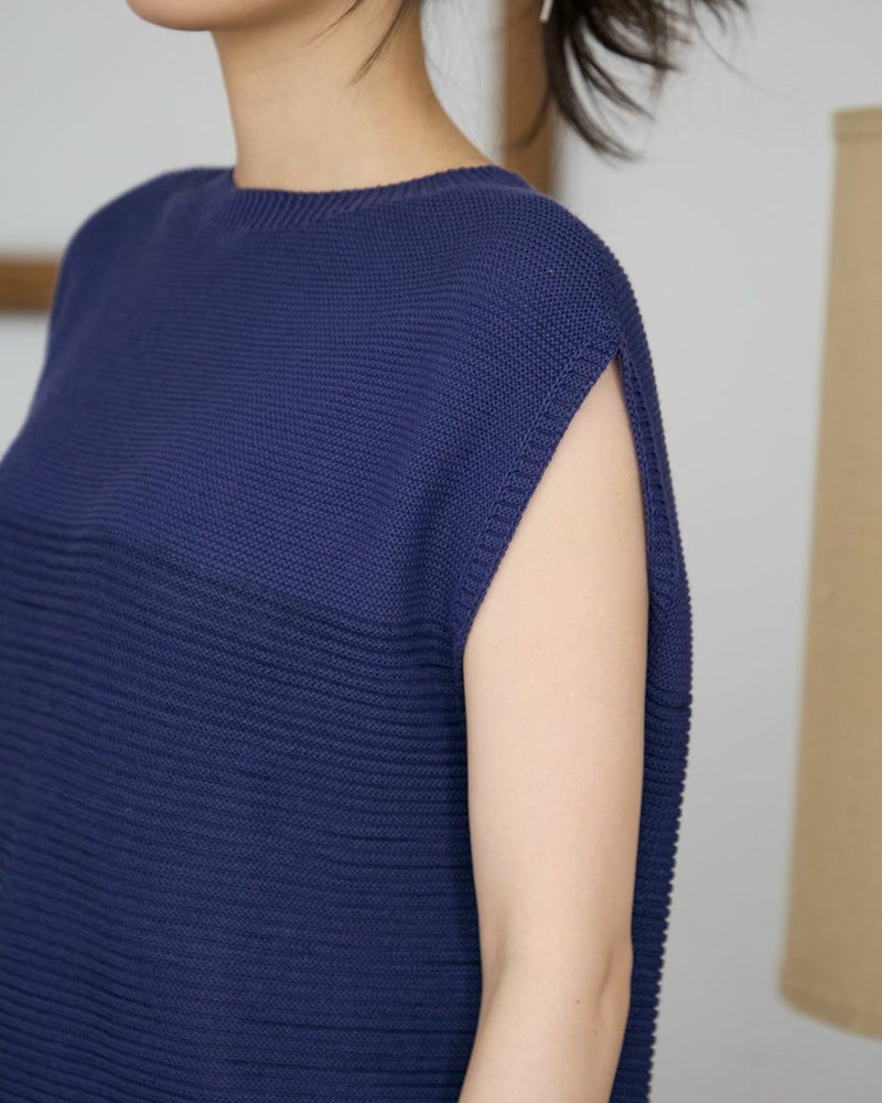 WHOLEGARMENTで編み上げたニットベストです。ガーターの編みに強弱をつけ表情ある1枚に仕上げています。レイヤードスタイルはもちろん、1枚でノースリーブとしての着用もおすすめです。 モデル身長: 166 cm 着用サイズ: M サイズ Golden Bear WOMEN ニット (WOMEN) 【着用アイテム】468R3760 ストレートパンツ 468R4760 サスペンダーパンツ