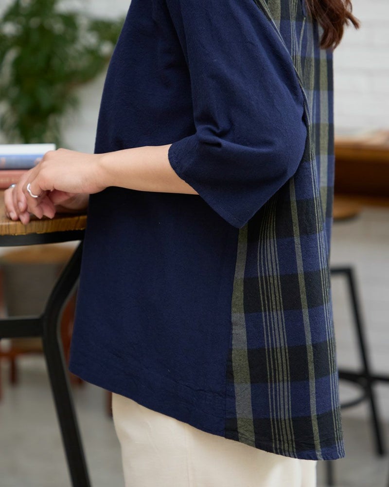 ラフに着られるサイズ感で体型を拾いません。二の腕もしっかりカバーした袖丈です。コーディネートのアクセントになる、後ろ身頃をチェック使いした1枚です。 モデル身長: 168 cm 着用サイズ: M サイズ Golden Bear WOMEN ブラウス (WOMEN) 同デザイン大きい(3L,4Lサイズ)はこちら 【着用アイテム】467R4703 スカート
