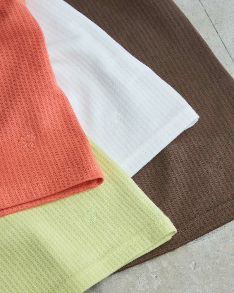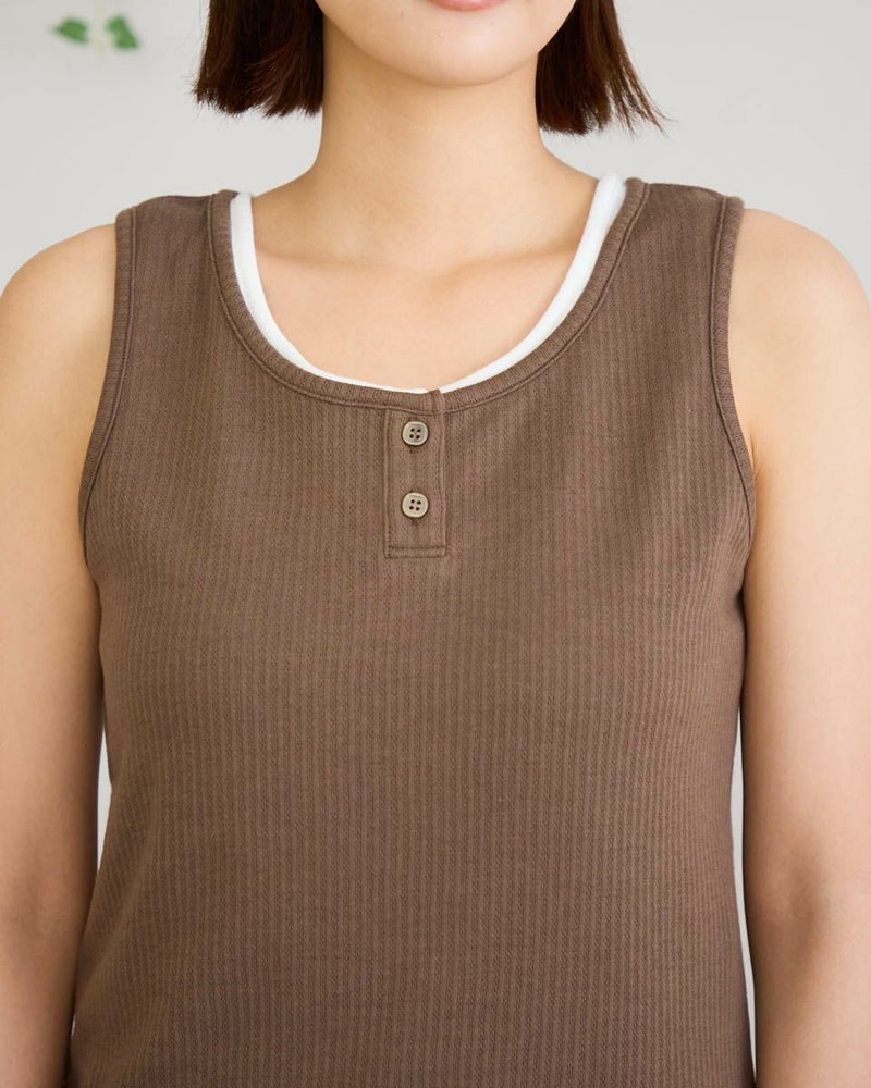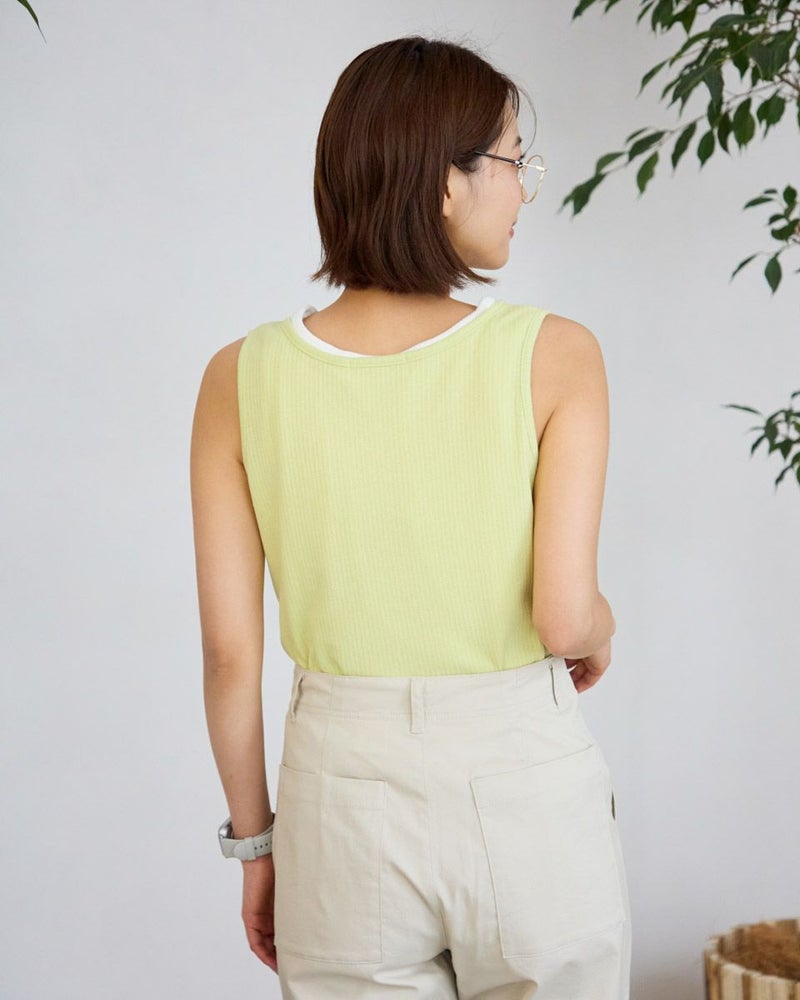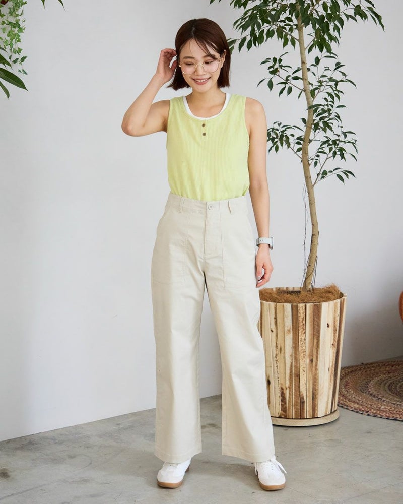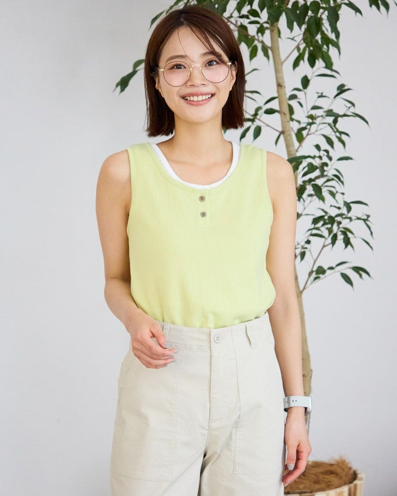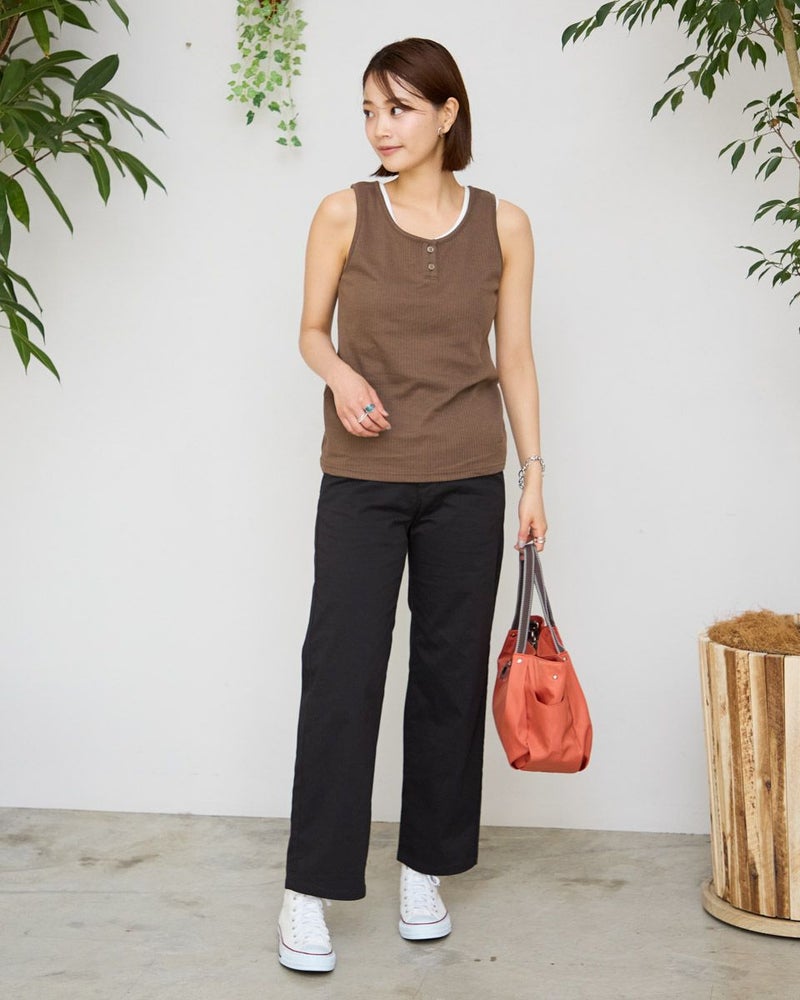 立体感のあるストライプのジャカード素材を使用したヘンリーネックタイプのタンクトップ。シンプルながらも程よくポイントのあるデザインで、1枚でもインナーとしても活躍するアイテムです。柔らかく肌ざわりの良い素材感で、暑い季節でも快適な着心地をキープできます。日常使いはもちろん、レイヤードやリゾートスタイルにもぴったりな1枚です。 モデル身長: 167 cm 着用サイズ: M サイズ Golden Bear WOMEN カットソー (WOMEN) 【着用アイテム】467R4703 スカート 467R6702 ストレートパンツ 467R7701 ベイカーパンツ 467R7001 UVグラデーションストール 467R7003 トートバッグ