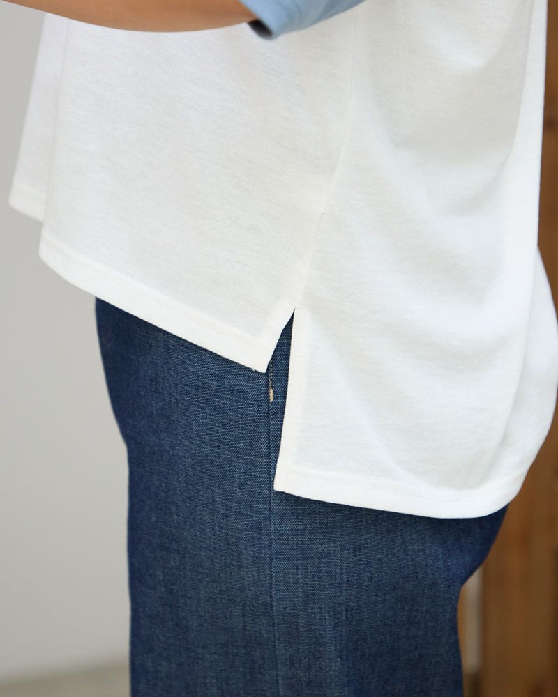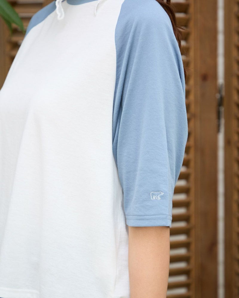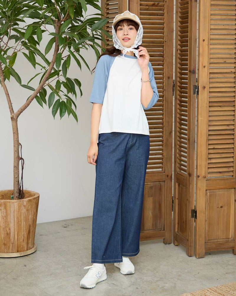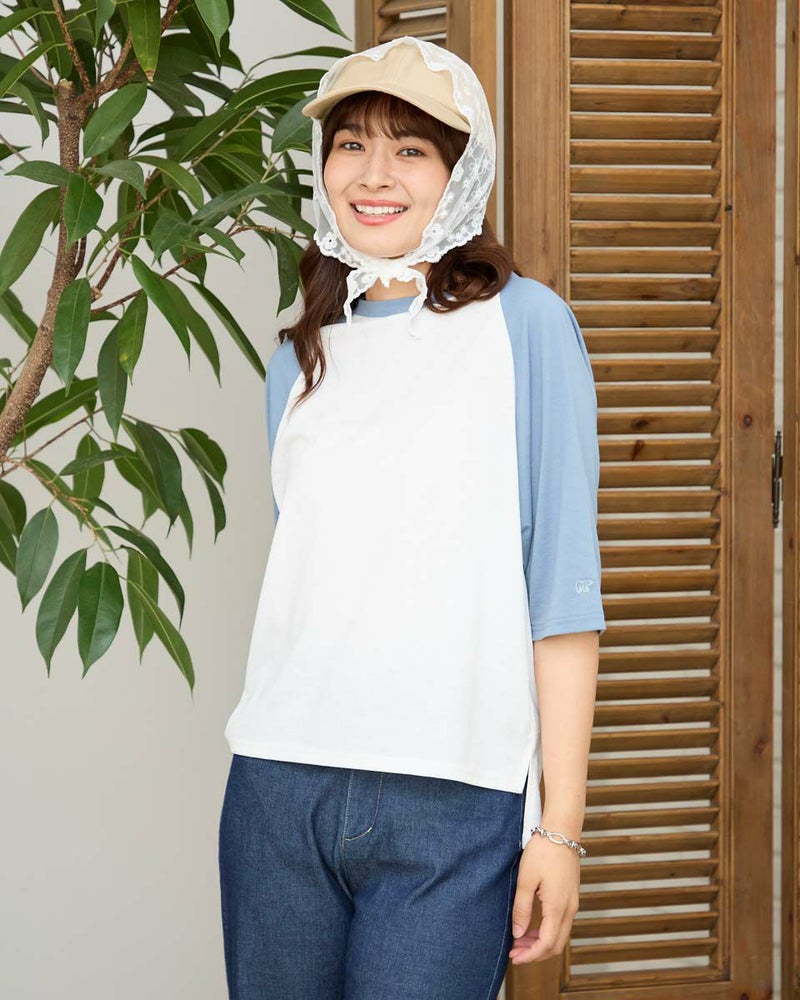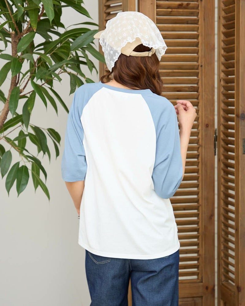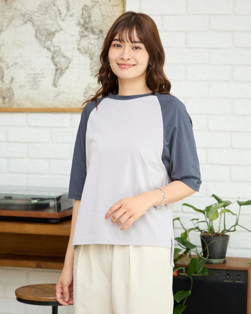 シンプルなラグランTシャツです。ボーイッシュな配色にしています。プリントスカートとのスタイリングがおすすめです。柔らかく着心地の良い天竺素材を使用しています。 モデル身長: 168 cm 着用サイズ: M サイズ Golden Bear WOMEN カットソー (WOMEN) 【着用アイテム】467R8702 セミワイドパンツ