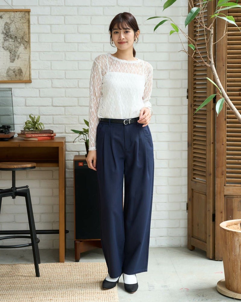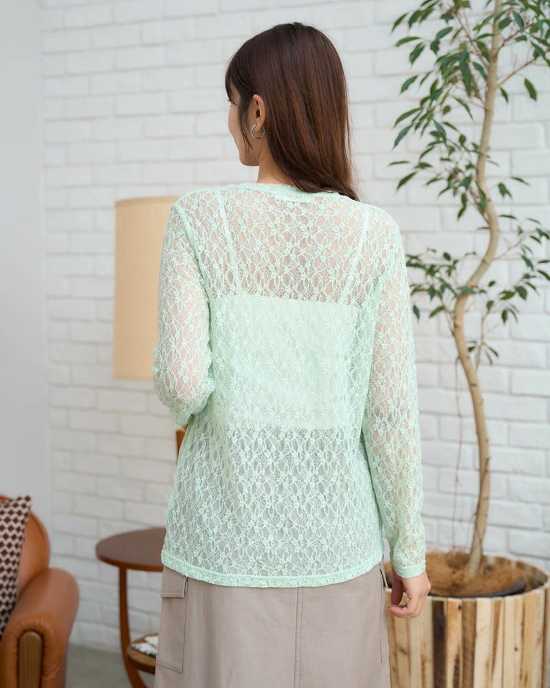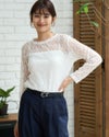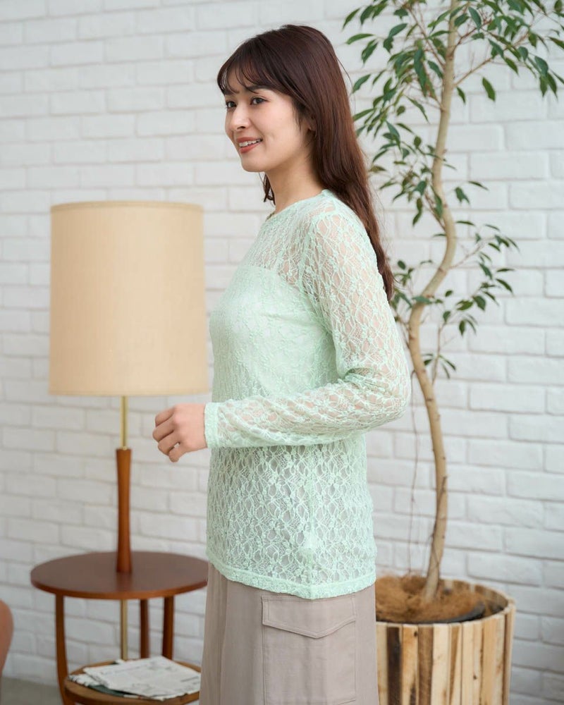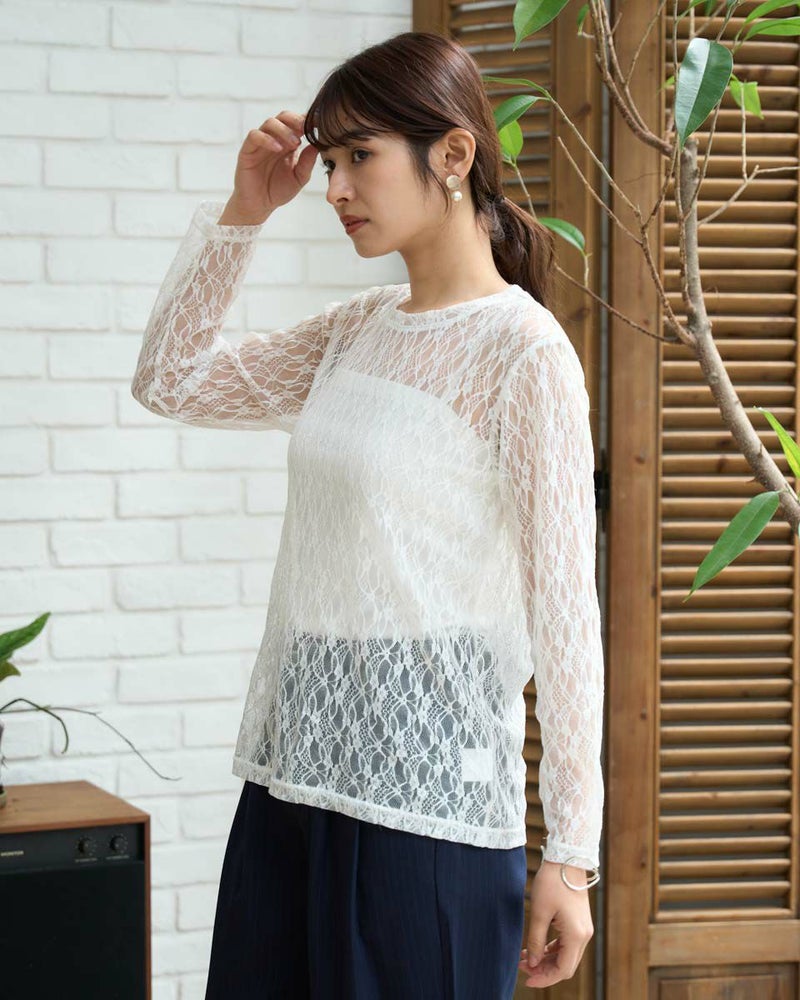 ストレッチの効いたレース素材で、重ね着に活躍するトレンド感満載のカットソー。Tシャツなどのインナーとしてはもちろん、プリントアイテムに重ねて透かしを楽しむスタイリングもおすすめ。