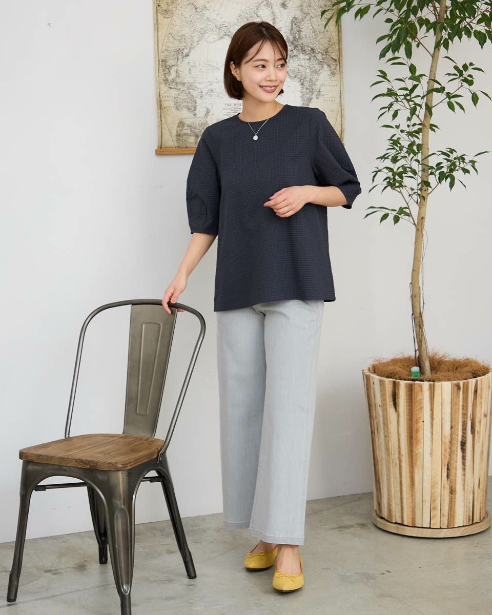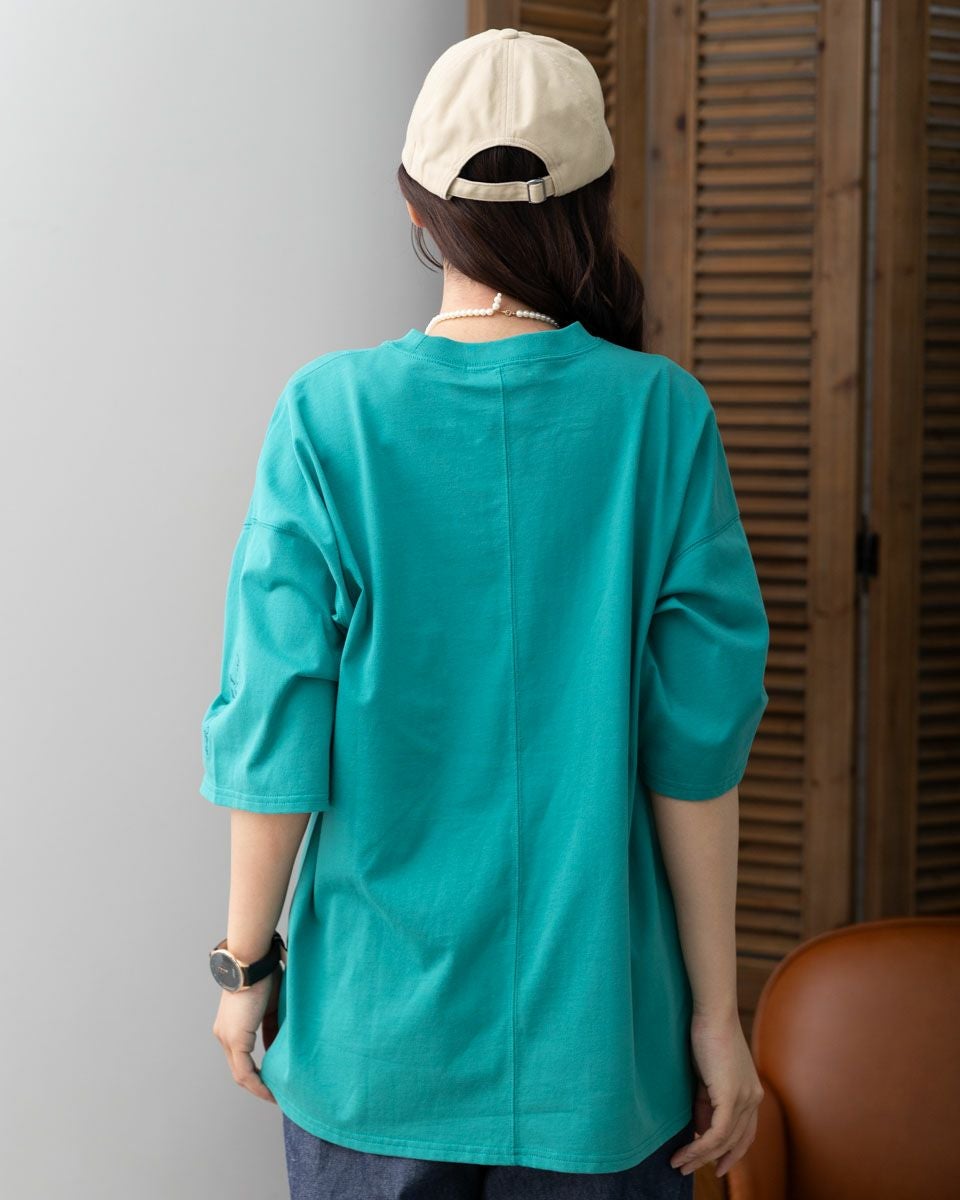 5分袖リブプルオーバー