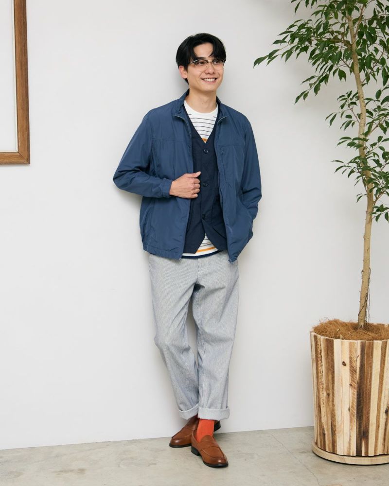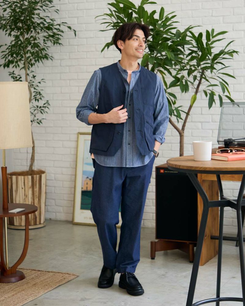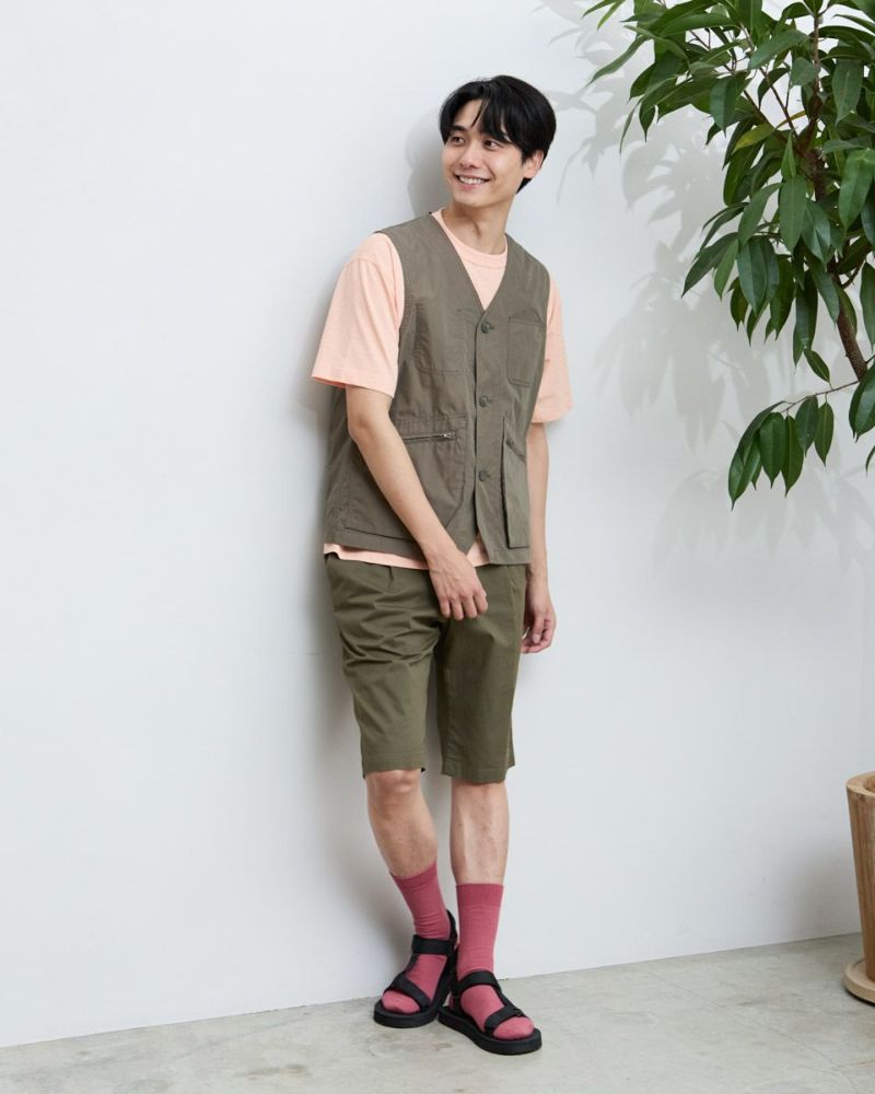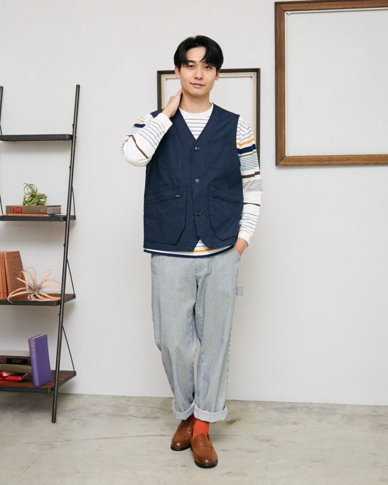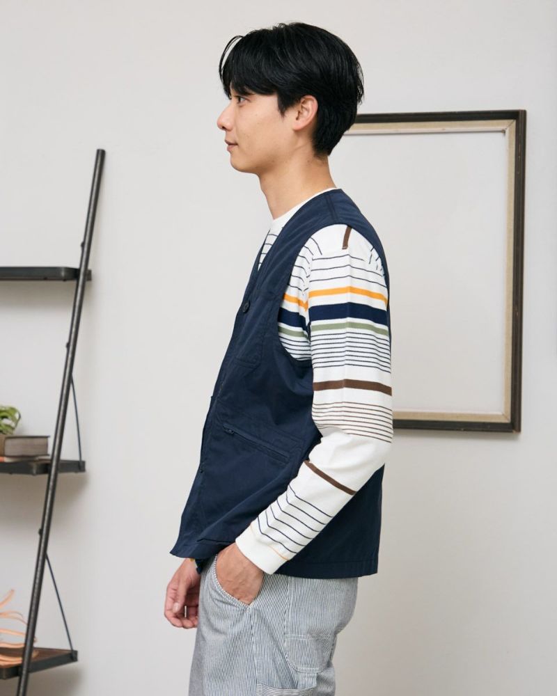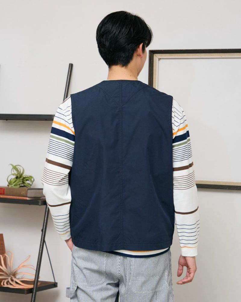 ハンティングベストをモチーフにしたアウターベストです。綿/ナイロン素材を使用し、シャツやTシャツとのレイヤードスタイルをお楽しみいただけます。ご家庭でのお洗濯(手洗い)が可能です。