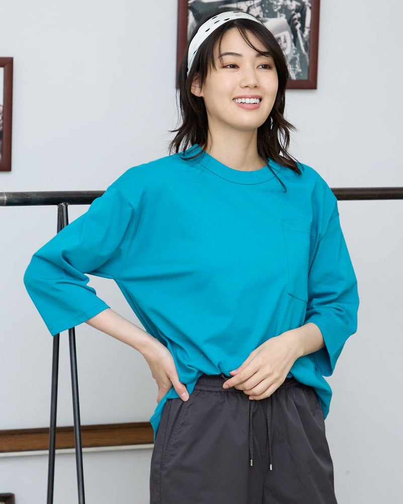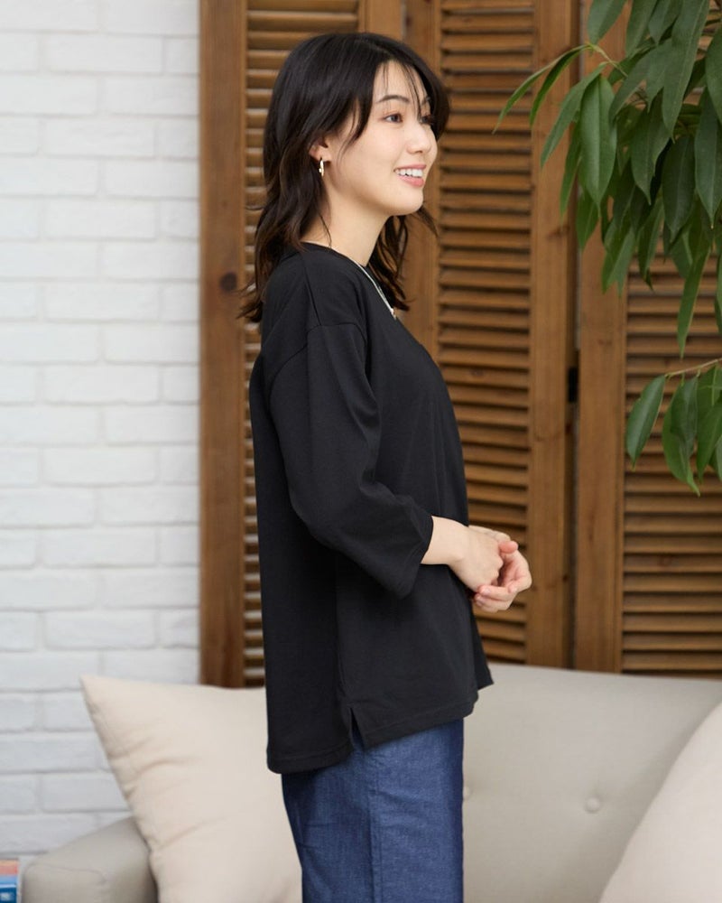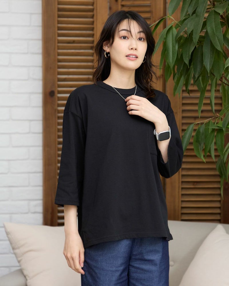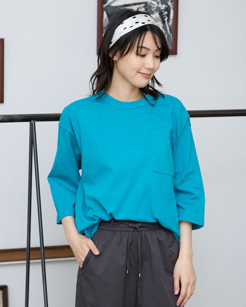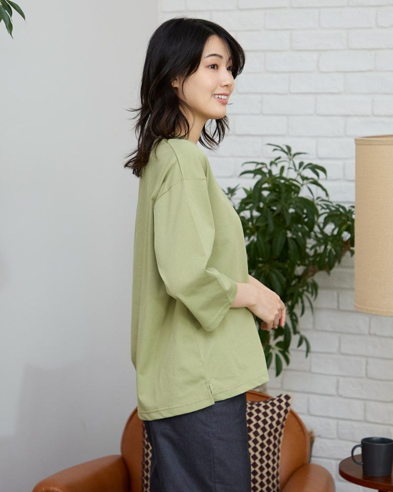 ベーシックなビッグシルエットTシャツの7分袖バージョンです。表面がなめらかで上品なプレーティング天竺素材を使用しています。吸水速乾と接触冷感の機能付きで、汗ばむ季節もさらっと快適な着心地です。使いやすいベーシックカラーと差し色を入れた4色展開です。 モデル身長: 166 cm 着用サイズ: M サイズ Golden Bear WOMEN カットソー (WOMEN) 同デザイン大きい(3L,4Lサイズ)はこちら メンズサイズはこちら 家族コーディネートアイテムはこちら 【着用アイテム】467R8601 カーディガン 467R8711 ガウチョパンツ 467R8720 ガウチョパンツ