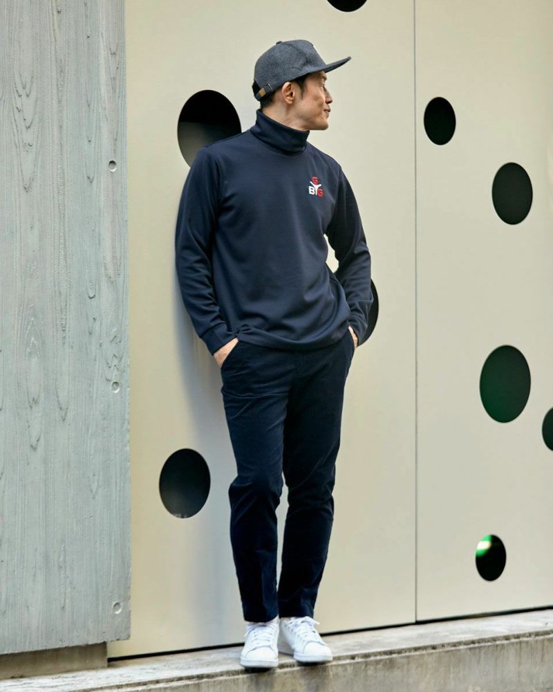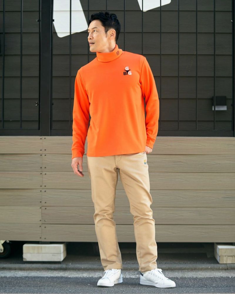 モチモチと、弾力のある生地を使用した、タートルネックTシャツです。1枚着だけでなく、様々なレイヤードスタイルに最適です。首元を暖かく、オシャレに着飾ります。 モデル身長: 180 cm 着用サイズ: L サイズ GB GOLF カットソー (Men's)