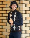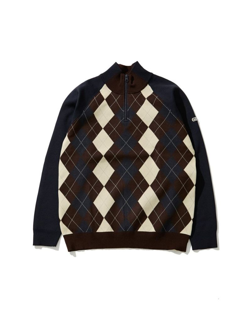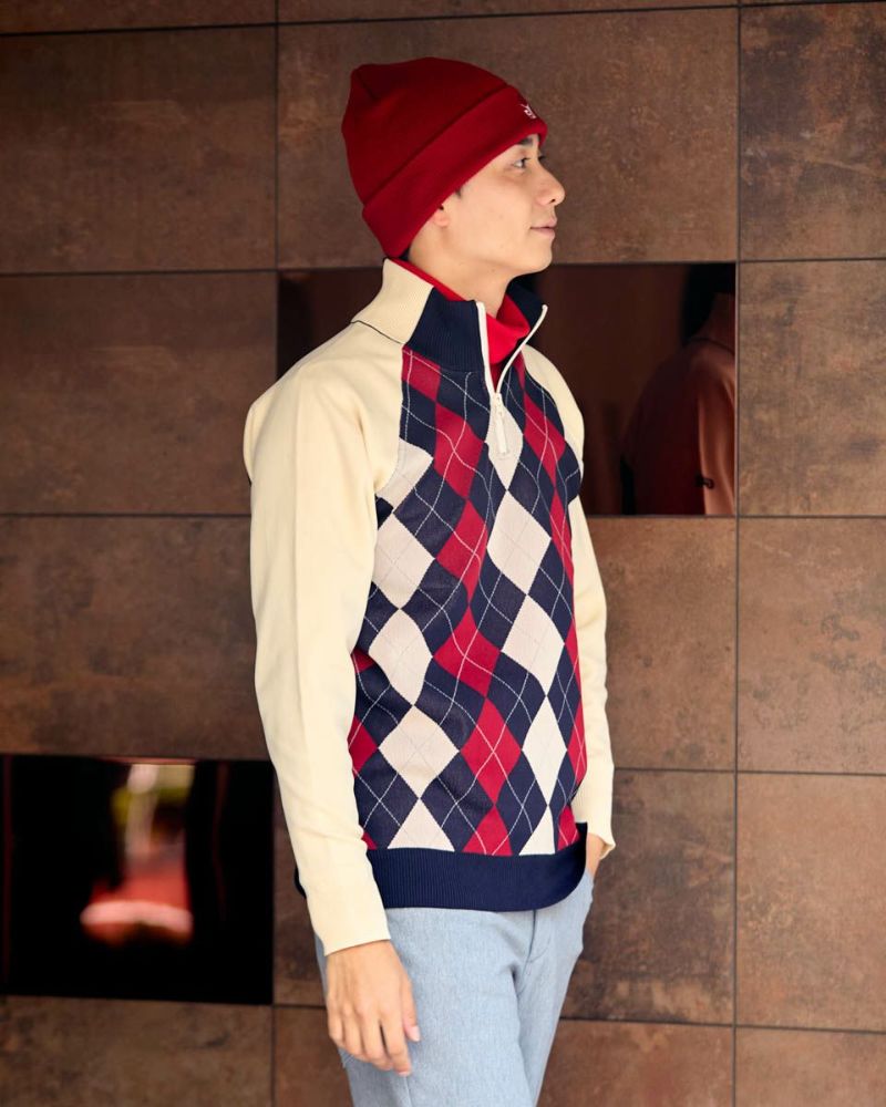 クラシカルなアーガイル柄のハーフZIPニットです。近年ゴルフウェアのニットでは主流となっているポリエステルニット素材を使用しています。なめらかなタッチと、軽さがポイントです。ご家庭で手洗い洗濯が可能で、お手入れラクラク!これ1枚着合わせるだけで、レトロスポーツLOOKが完成! モデル身長: 180 cm 着用サイズ: L サイズ GB GOLF ニット (Men's) 【着用アイテム】 TOURタートルネック (品番: 312QD442 ) GBGパンツ (品番: 312QD705 ) GBGスラックス (品番: 312QC703 )