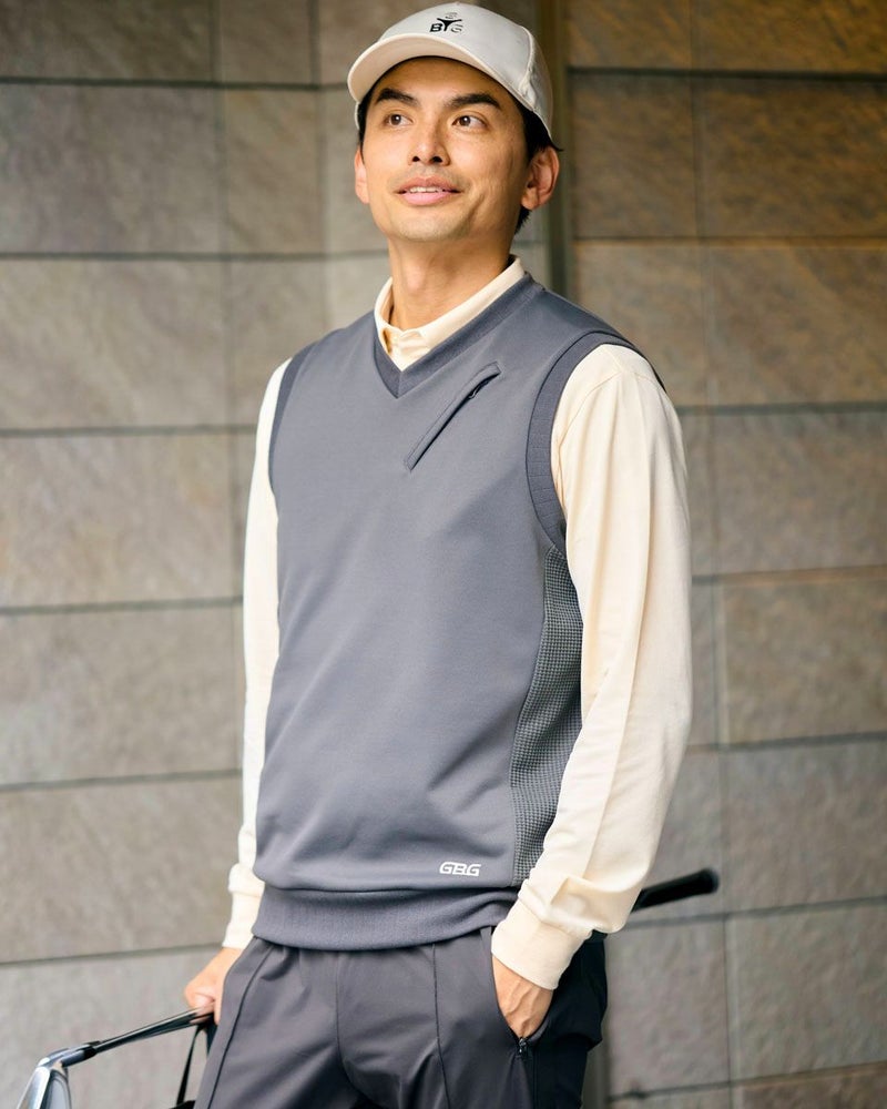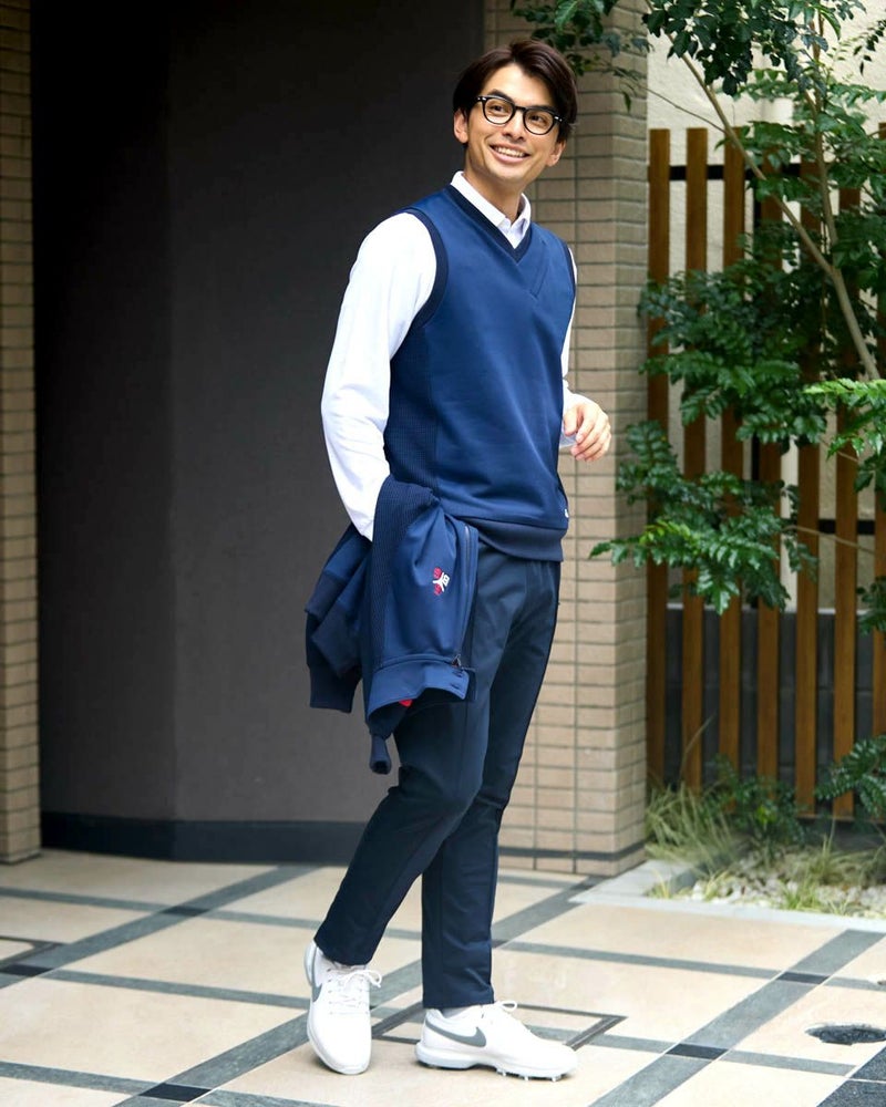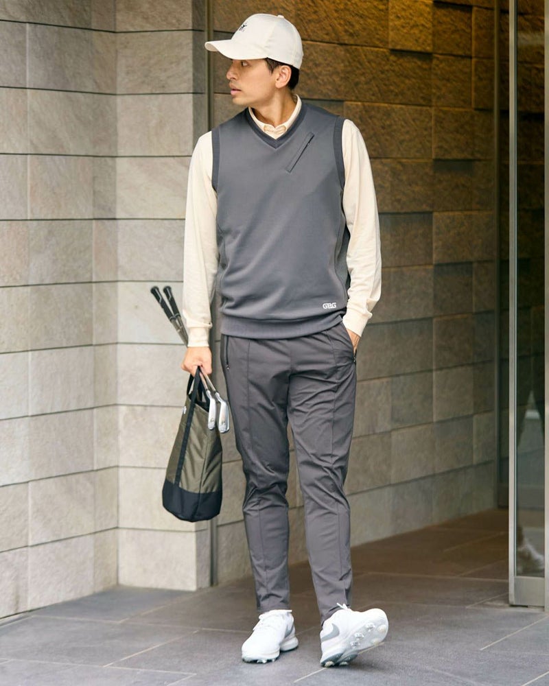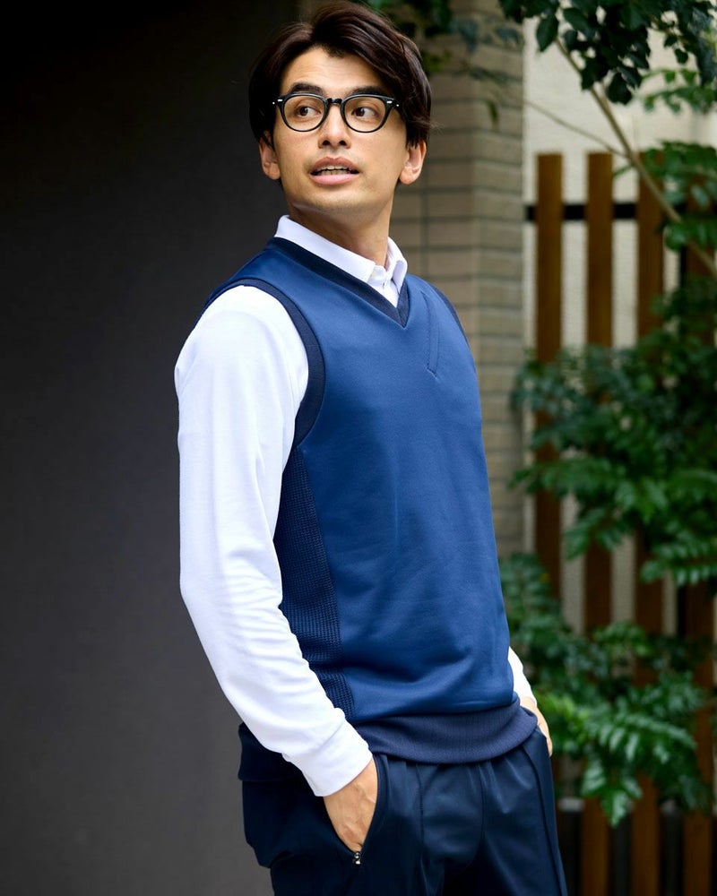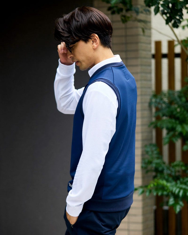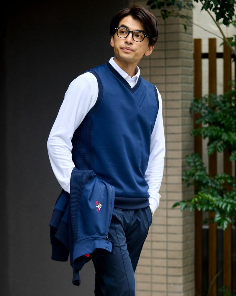 ポロシャツ、ハイネックTシャツと 合わせると良い。 着心地が良く、動きやすい。