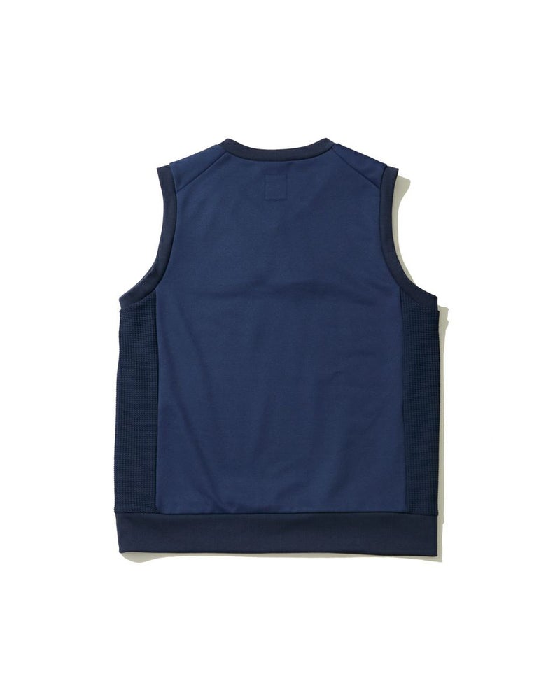 異なる生地を組み合わせたカットソーベストです。ワッフル生地と裏毛組織で切り替えた、秋物のプラスワンにおすすめのアイテムです。吸水速乾性に優れたカットソー素材は、適度なストレッチ性があり、着心地抜群!ポロシャツやモックネックとのレイヤードに最適です!