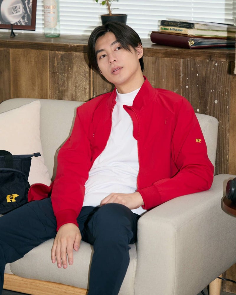 衣装提供しているプロ選手に試着していただいた時、最も人気があったG-9型ブルゾンです。吸水速乾・UVカット機能を備えているため、汗による冷えを防ぎ、寒い日のゴルフプレイも快適に楽しめます。