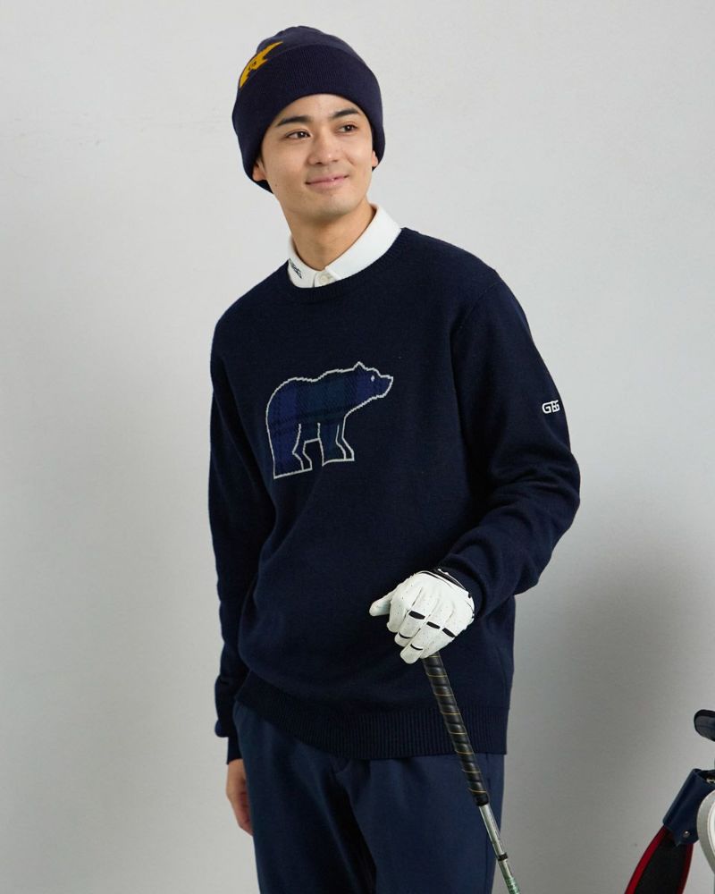 前後に施されたクマが嫌味なく、アイコンになっていて、着心地も抜群!お家庭洗濯も簡単なアイテムなのでお手入れも簡単!ウールを使用しているので、生地に柔らかさもあります。中にシャツを合わせていいですし、一枚で着てもサマになる、今期とっておきのアイテムです!