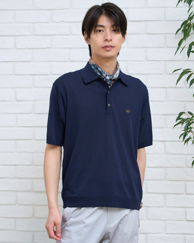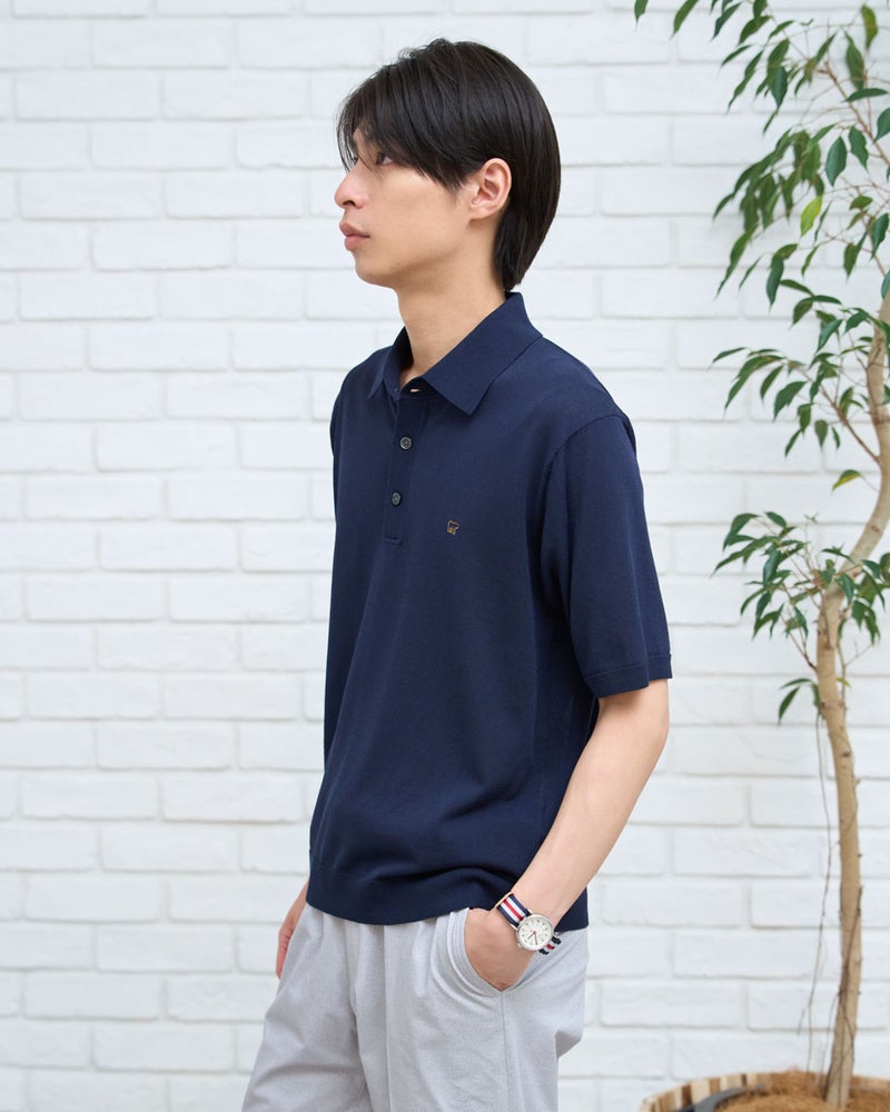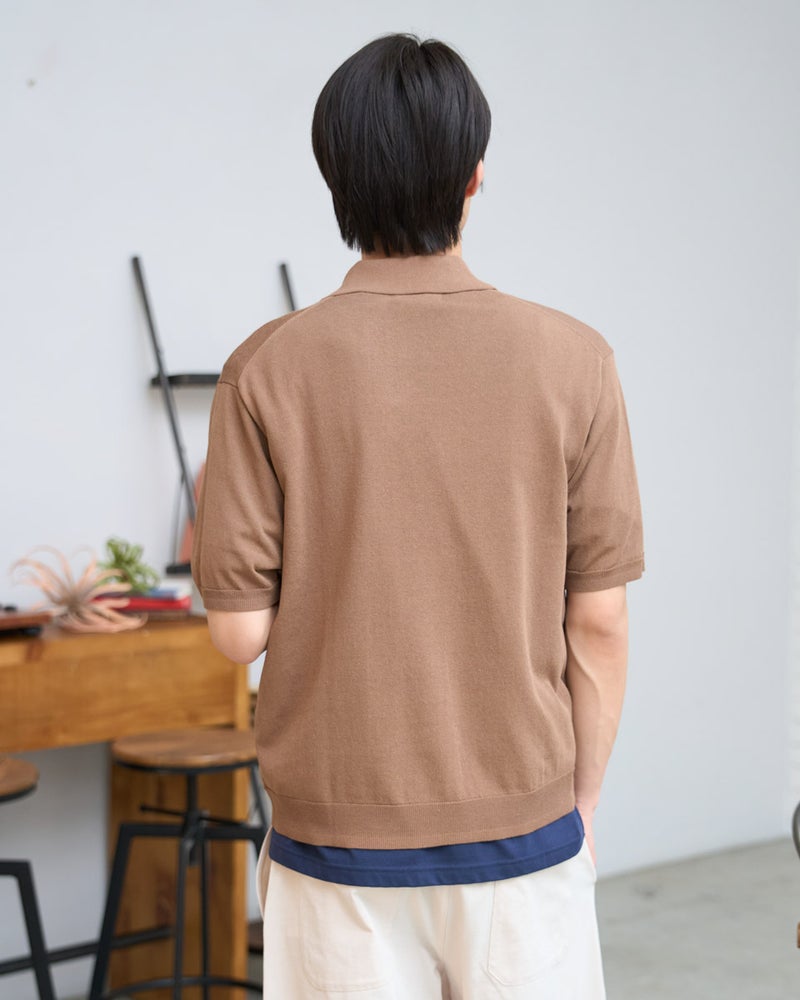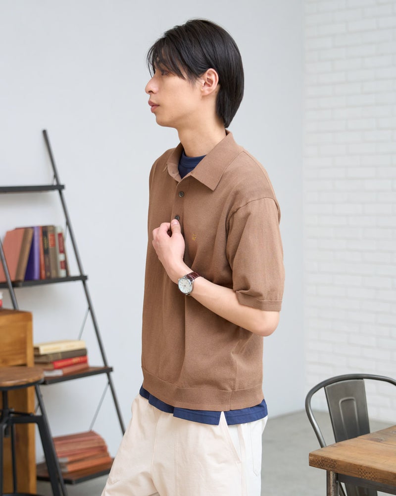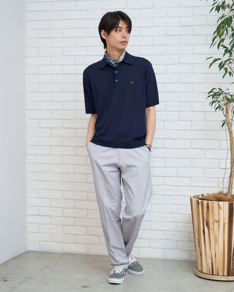 綿麻混素材を使い14G天竺で編みたてたニットポロです。家庭洗濯(手洗い)が可能です。襟と前立てはハリコシを持たせる為、編み組織を変えてしっかりさせました。ジャケットを羽織っても襟がすっきり整うように設定。キレイめなコーディネイトはもちろん、カジュアルダウンしても上品に決まるニットです。