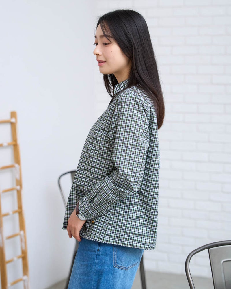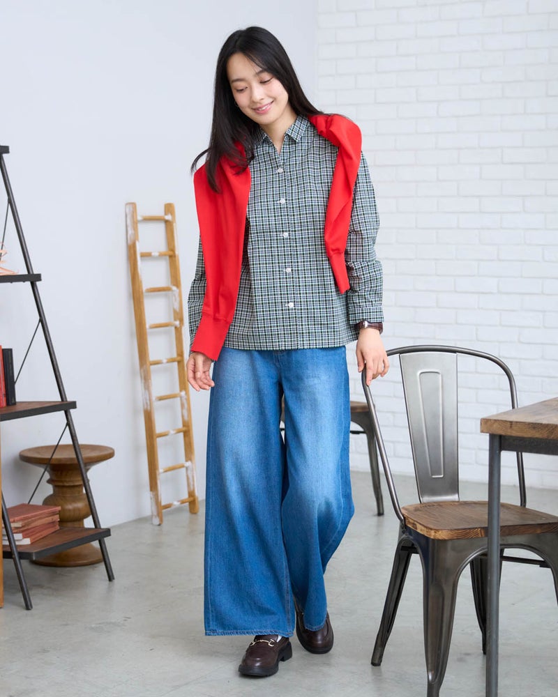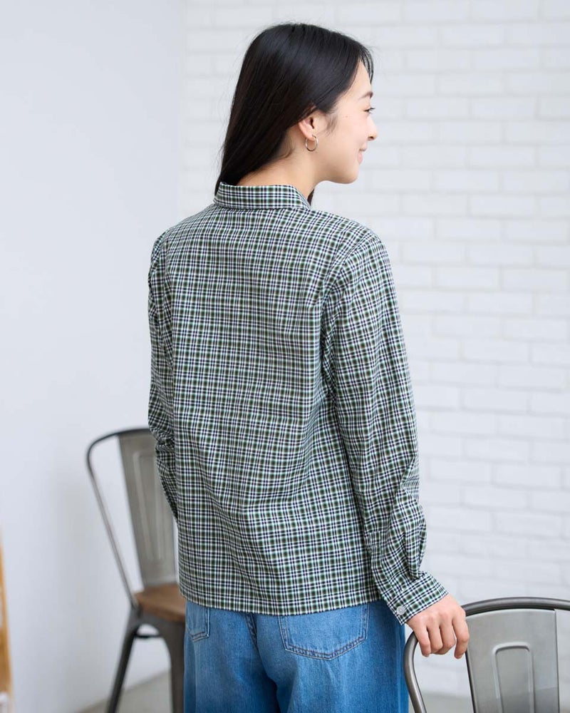 首元をすっきりと見せるスキッパーデザインが、大人らしい抜け感を演出します。一枚で着ても上品に決まるフィット感に仕上げました。さらりとした肌触りで、春の陽射しの中でも清涼感をキープ。お仕事の日も、少しきれいめに見せたい休日のお出かけにも、心地よく寄り添う一着です。裾に入った刺繍がポイントです。 モデル身長: 167 cm 着用サイズ: M サイズ Golden Bear WOMEN ブラウス (WOMEN) 【着用アイテム】467U4404 UVカットカーディガン 468U4750 ワイドデニムパンツ
