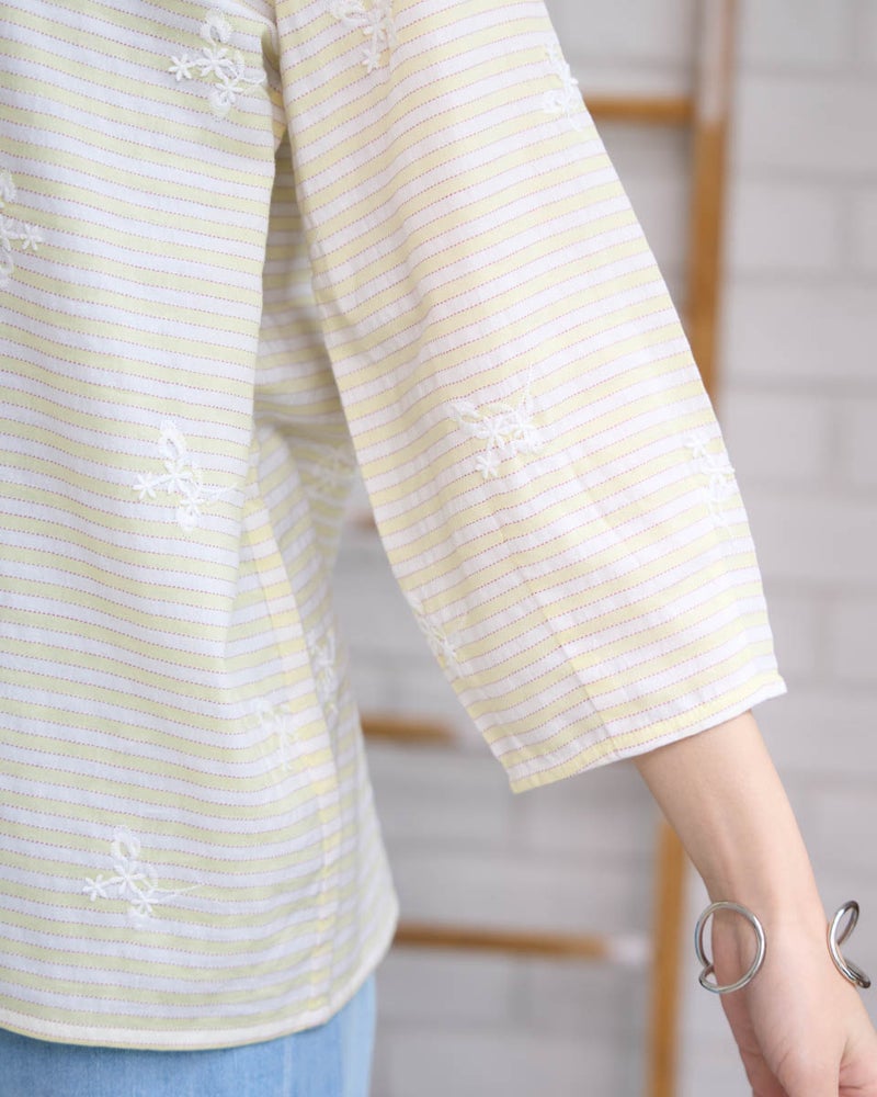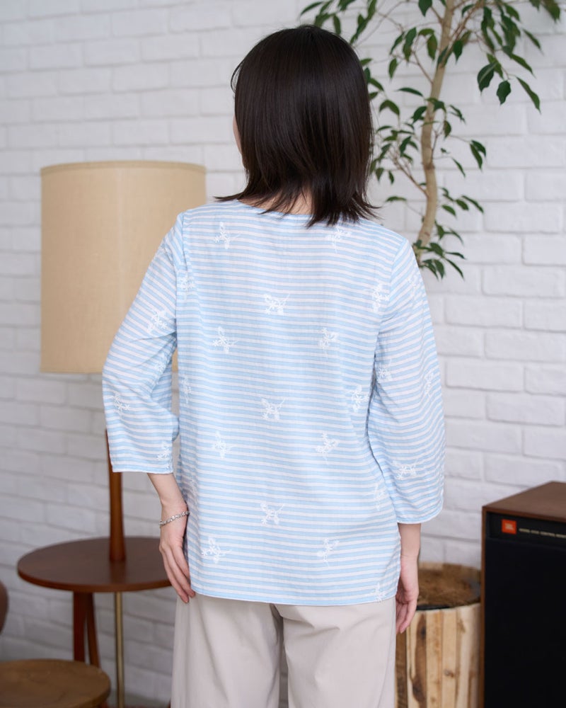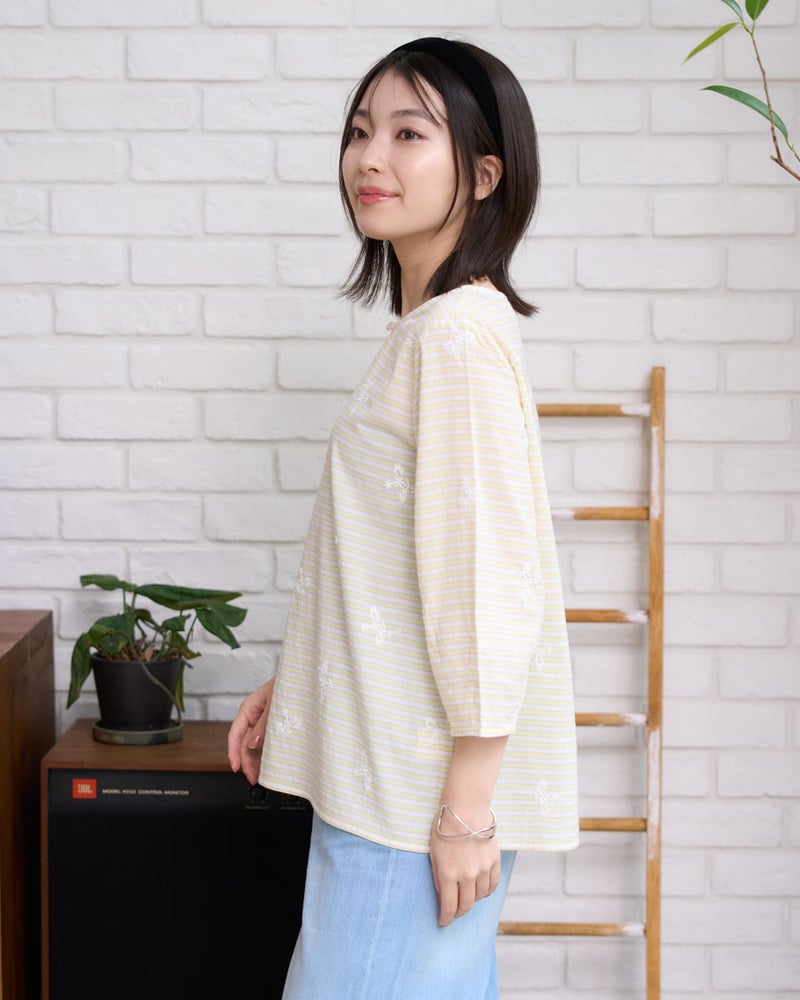 忙しい朝もサッと纏うだけでお洒落が完成する、プルオーバータイプのかぶりブラウス。ふんわりとした柔らかなシルエットが体を優しく包み込み、気になるラインをさりげなくカバーしてくれます。デニムとの相性も良く、気取らない日常に華やかさを添えてくれる、着心地満点の一枚です。 モデル身長: 162 cm 着用サイズ: M サイズ Golden Bear WOMEN ブラウス (WOMEN) 【着用アイテム】468U4750 ワイドデニムパンツ 468U4752 ストレートストレッチパンツ